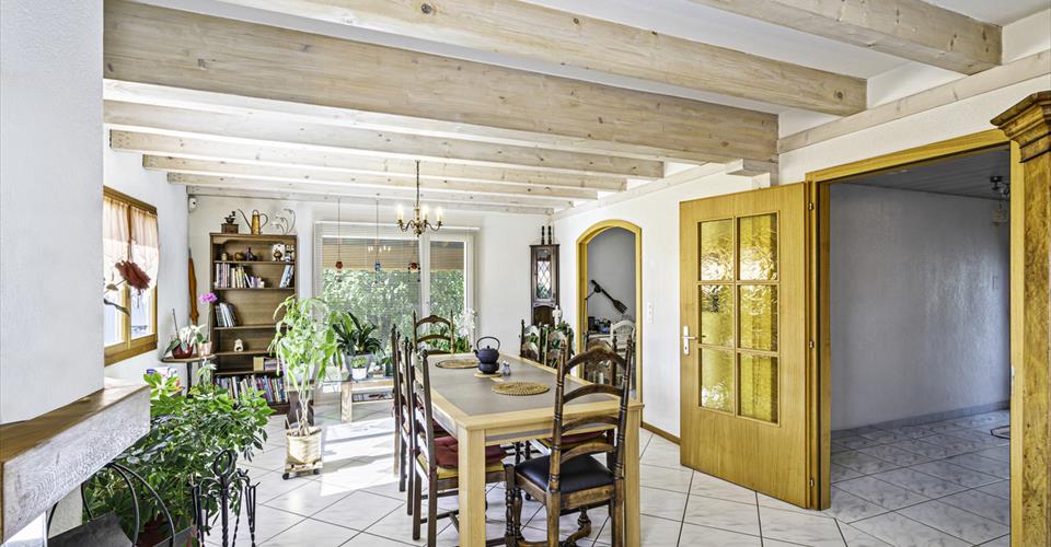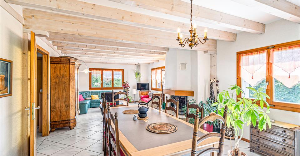 Cette charmante maison, construite en 1995, saura séduire par ses volumes généreux, sa luminosité et son grand jardin de 492 m², idéal pour profiter des beaux jours en toute tranquillité. Répartie sur trois niveaux – sous-sol, rez-de-chaussée et premier étage – elle offre une organisation pratique et agréable, pensée pour le confort d’une famille. Grâce à son orientation Sud-Est et ses grandes baies vitrées (double vitrage, triple côté Sud-Ouest), la maison bénéficie d’une luminosité optimale tout au long de la journée. Son système de chauffage performant, associant pompe à chaleur et panneaux solaires avec diffusion au sol, garantit confort et efficacité énergétique. La maison est équipée par la fibre optique, idéale pour le télétravail ou les besoins numériques de toute la famille. Bien entretenue, elle laisse également la possibilité de l’adapter et de la personnaliser selon vos envies. Un véritable havre de paix. Distribution des espaces : Rez-de-chaussée Grand hall d’entrée Salon avec cheminée Salle à manger et cuisine Accès direct au jardin depuis les pièces de vie Grande salle de bain rénovée avec baignoire Escalier menant à l’étage Premier étage Quatre chambres lumineuses Une salle de bain avec douche rénovée Sous-sol Garage Locaux de rangement Une grande pièce sécurisée occupant la moitié de la surface de la maison (abri PC).