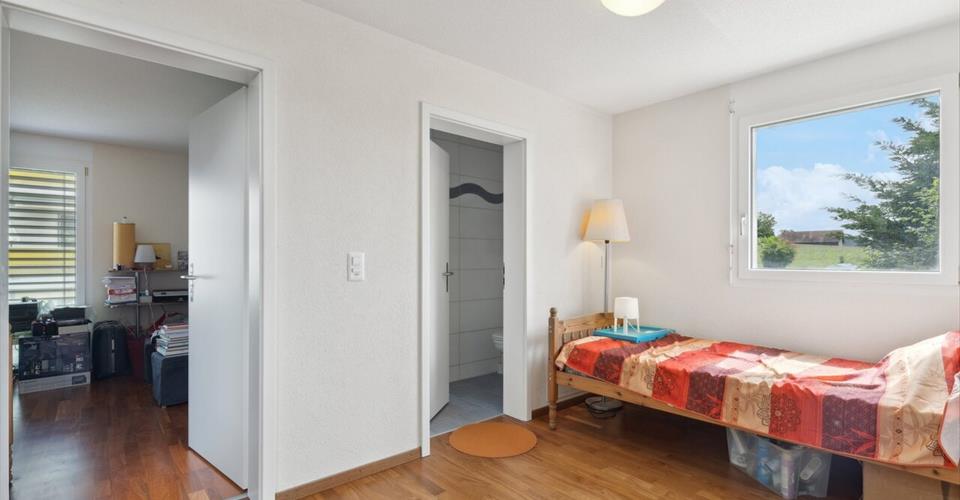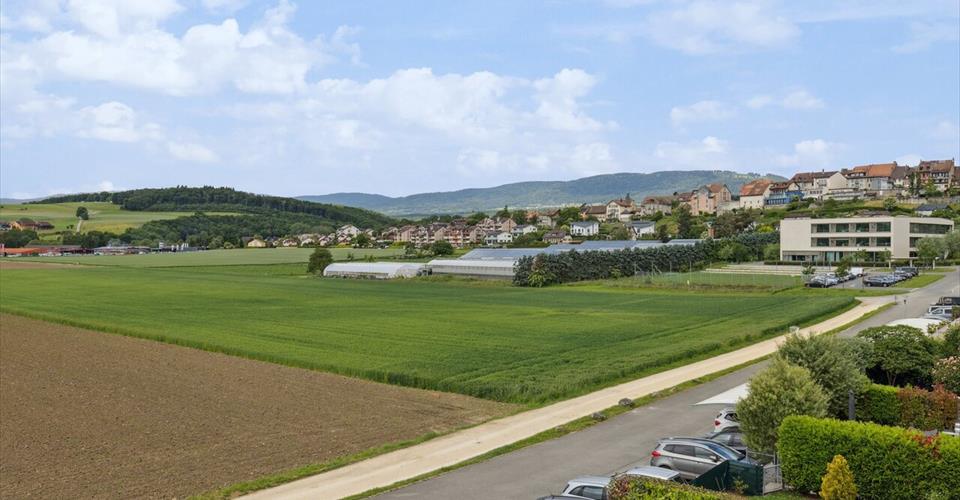 Informations clés Disponible à partir de : À convenir Type : Villa en bout de rangée Nombre de pièces : 5,5 Nombre de salles de bain : 2 (plus WC visiteurs) Surface habitable : 137.32 m² Surface de stockage : 55 m² Balcon : 21.85 m² Terrasse : 18 m² Jardin : 283 m² Parking : 2 places (1 couverte, 1 extérieure) Caractéristiques & équipements Balcon / Terrasse Vue panoramique (Alpes & Jura) Places de parking dédiées (2) Description Située dans un quartier calme et familial au sud-est de La Sarraz, cette spacieuse villa 5,5 pièces en bout de rangée offre une expérience de vie exceptionnelle. Avec 141 m² de surface habitable bien répartie sur trois niveaux et un sous-sol partiellement chauffé, cette maison lumineuse garantit tranquillité absolue et environnement verdoyant. Réveillez-vous chaque jour avec une vue imprenable et dégagée sur les majestueuses Alpes et montagnes du Jura, visibles depuis la plupart des pièces. La villa bénéficie d’un généreux jardin de 283 m², d’une terrasse de 18 m² et d’un balcon de 21,85 m², parfaits pour profiter de la vie en plein air et recevoir. Emplacement idéal & accessibilité Écoles (1P – 11H) : Toutes les étapes de la scolarité, de la primaire au cycle moyen, sont accessibles en 5 minutes à pied. Pratique pour les pendulaires : La gare/bus de La Sarraz se trouve à 5 minutes à pied, avec des trains rejoignant Lausanne en environ 20 minutes. Commerces à proximité : Coop et Migros sont à distance de marche (6-8 minutes jusqu’aux magasins, 4 minutes jusqu’à la boulangerie). Excellentes connexions : Autoroute à 8 minutes, Lausanne à seulement 20 minutes en voiture. Agencement de la villa Rez-de-chaussée : Entrée couverte Cuisine, séjour/salle à manger avec accès à la terrasse WC visiteurs 1er étage : Couloir 3 chambres 1 salle de bain avec douche 2e étage : Chambre parentale avec hauts plafonds 1 salle de bain en suite avec douche Sous-sol : Couloir Local de rangement Local de stockage et buanderie Extérieur : Terrasse de 18 m² Jardin de 283 m² 1 place de parking couverte et 1 place extérieure
