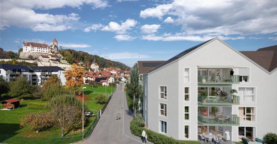 EN EXCLUSIVITÉ CHEZ PROXIMMO, VOTRE AGENCE IMMOBILIÈRE : PROJET UNIQUE POUR UNE QUALITÉ DE VIE HORS DU COMMUN Parfaitement situé dans un quartier résidentiel calme et verdoyant à proximité directe du centre de Lucens, ce superbe projet immobilier de trente logements aux surfaces généreuses, vendus sur plan, bénéficie d’un cadre de vie exceptionnel pour la région, protégé des nuisances et à deux pas de toutes les commodités. Répondant à des critères de qualité, de sécurité et de confort des plus exigeants, cette superbe réalisation offre tous les atouts recherchés par des personnes soucieuses de bénéficier d’un environnement privilégié dans un nouveau quartier tout en jouissant des avantages indéniables d’une vie citadine. Les lots ont été parfaitement configurés et intelligemment réfléchis jusque dans les moindres détails pour optimiser les espaces de vie, mis en valeur par une luminosité naturelle constante tout au long de la journée grâce à une excellente exposition. Les distributions intérieures sont fonctionnelles et optimales, offrant de vraies pièces agréables à vivre au quotidien. Ce projet “coup de coeur” bénéficie par ailleurs de prix attractifs et propose des logements énergétiquement efficients. Chaque lot jouira de beaux espaces extérieurs avec de grands jardins privatifs ou de généreux balcons-terrasses pour les appartements à l’étage. Le sous-sol offre un parking souterrain connecté aux lots par ascenseurs ou accès privés. Un spacieux local à vélo est également prévu pour favoriser la mobilité douce. Les immeubles se distinguent par leur très belle ligne architecturale et la qualité de leurs finitions qui en fera une réalisation singulière pour la région et un lieu de vie privilégié. Cette nouvelle promotion est située à proximité directe du centre de la commune de Lucens, où se trouvent toutes les commodités. Les établissements scolaires de la commune sont à seulement quelques minutes à pieds, tout comme les médecins, banques, centres sportifs et autres nécessités. La gare CFF est à 5 min à pieds, la route de Berne à 3 min et l’autoroute est à 15 min. Il faut compter 15 min pour se rendre au centre de Payerne, et env. 20 min pour rejoindre Lausanne. Permis en force – Début du chantier pour printemps / été 2025 BELLE OPPORTUNITÉ A NE PAS MANQUER ! 2,5 pièces dès CHF 410’000.- 4,5 pièces dès CHF 670’000.- Villa dès CHF 860’000.- Places intérieures en sus CHF 30’000.-/unité Site officiel de la promotion : https://www.pierre-de-soleil.ch/ C’est avec grand plaisir que nous organiserons une visite des lieux à votre convenance et que nous vous recevons sur rendez-vous pour vous présenter ce magnifique objet ! ——– Dossier, informations et visite sur demande en nous envoyant vos coordonnées complètes par e-mail. Sébastien Pannatier ou Laurent Pannatier PROXIMMO Agence Immobilière Sàrl Place Bel-Air 1 CH – 1003 Lausanne www.proximmo.ch ——– Toutes nos offres et promotions sont visibles ici : https://proximmo.ch/proximmo-vente-immobilier.html ——– Vous envisagez de mettre en vente votre bien immobilier ? Contactez-nous sans engagement pour une estimation gratuite de votre objet. www.proximmo.ch
