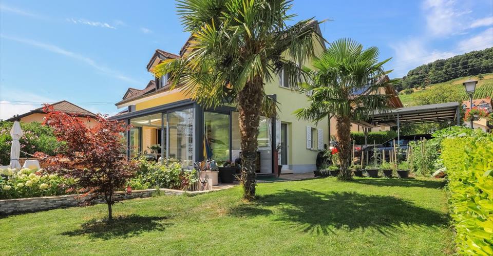 En Exclusivité ! Au coeur du vignoble de La Côte, cette villa jumelle soigneusement entretenue a bénéficié d’importants travaux de rénovation en 2020. Le rez, comprend une entrée avec un WC visiteurs, un salon spacieux, une cuisine ouverte et une véranda chauffée. À l’étage : deux chambres, une suite parentale avec salle de douche privative, ainsi qu’une salle de bain indépendante avec WC. Le sous-sol propose un local technique avec buanderie, trois pièces/caves polyvalentes et une salle de douche avec WC. À l’extérieur : Un jardin aménagé avec soin, un jacuzzi encastré, une cuisine d’été et un potager. Un carport pour deux voitures avec borne de recharge électrique et une place de parc extérieure complètent ce bien. Vous l’avez compris, elle vous offrira un cadre de vie paisible, confortable et pratique.