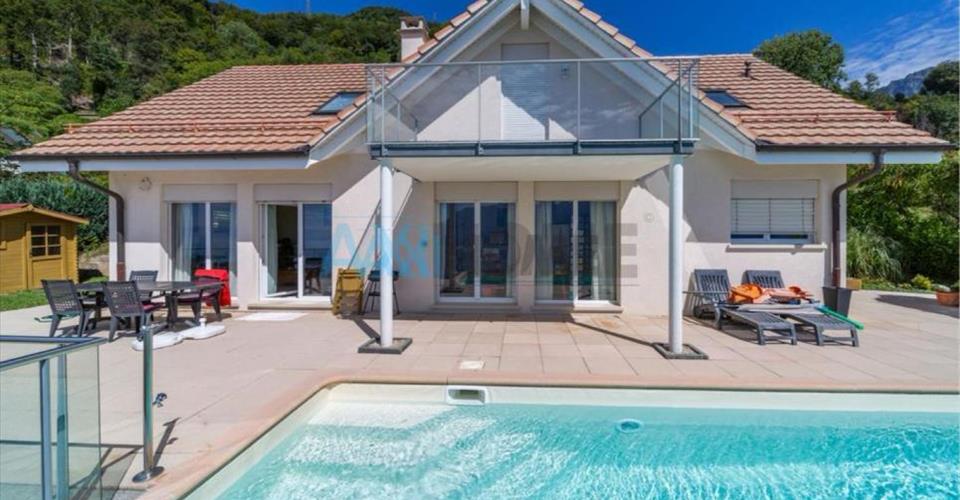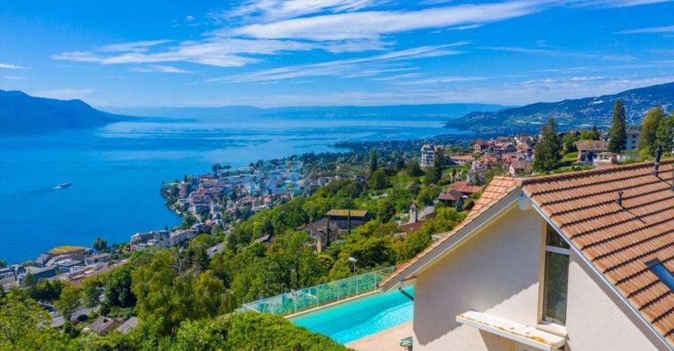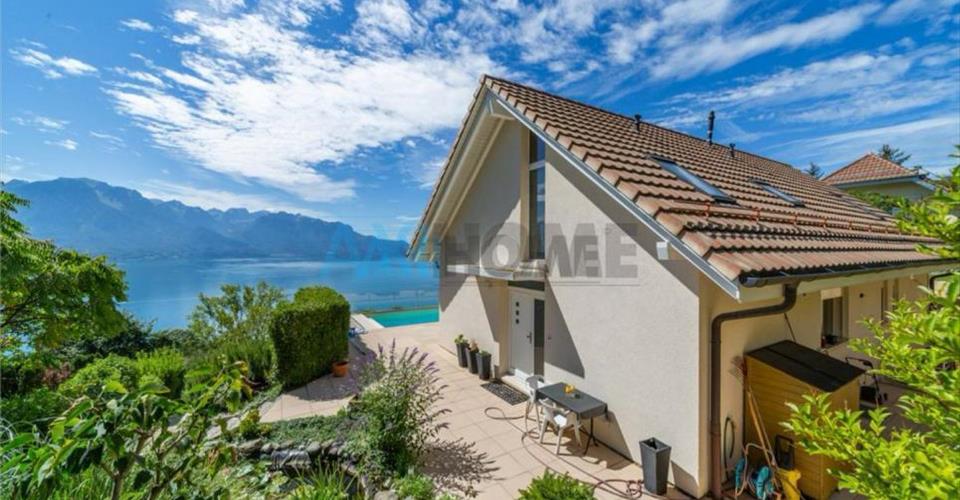 Sise sur les hauteurs de Montreux, cette magnifique propriété de 5.5 pièces est située dans un quartier résidentiel du village de Chernex. Le centre-ville de Montreux se trouve à moins de 10 minutes en voiture. Construite en 2005, elle a été entretenue régulièrement par les propriétaires actuels et se trouve donc en bon état d’entretien général. Elle bénéficie de pièces spacieuses et lumineuses et jouit d’une somptueuse vue sur le lac et les montagnes. Distribuée sur 2 niveaux + sous-sol, cette maison totalise une surface habitable d’environ 240m2. Elle est aménagée comme suit: Sous-sol: Salle de jeux Buanderie Local technique pour la piscine Spacieuse cave Salle de douche Rez-de-chaussée: Hall d’entrée Séjour/salle à manger avec accès sur la terrasse Cuisine fermée entièrement agencée Chambre à coucher parentale avec salle de bains en suite Bureau WC visiteurs Étage: 3 chambres à coucher Bureau Salle de douche Bâtie sur une parcelle de 1’088m2 orientée plein Sud-Ouest, cette maison offre de beaux espaces extérieurs privatifs, dont notamment une superbe piscine, une spacieuse terrasse d’environ 144m2, un jardin ainsi qu’un étang. Un garage double ainsi que 2 places de parc extérieures viennent compléter agréablement ce bien.