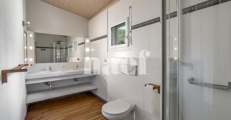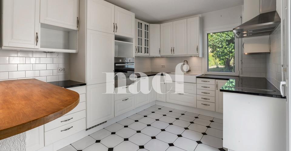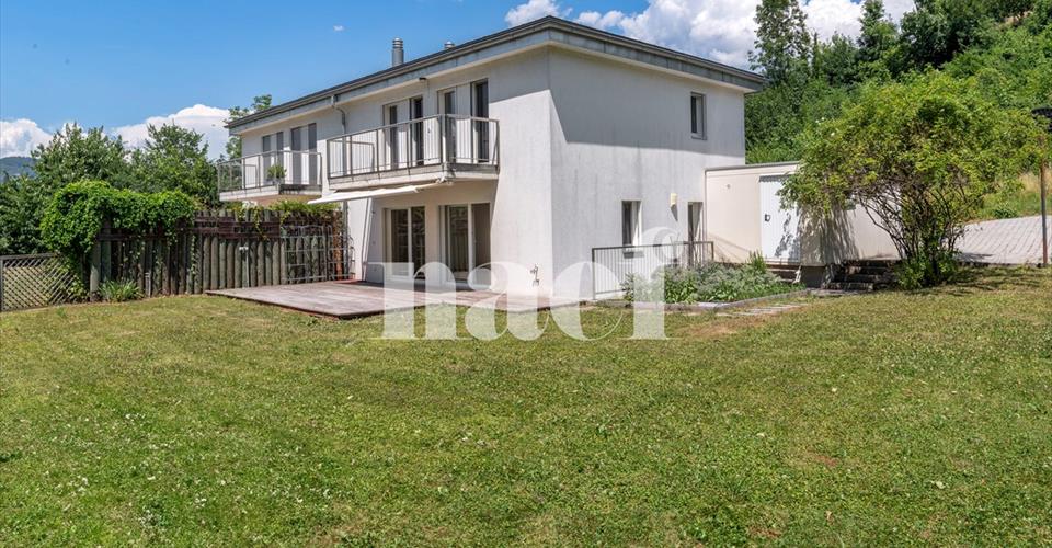 Située dans l’un des quartiers résidentiels les plus prisés de Montreux, cette charmante villa mitoyenne de 5.5 pièces offre env. 160 m² habitables et 187 m² de surface utile sur une parcelle arborée de 1’250 m². Construite en 2006, elle dispose d’une pièce de vie lumineuse avec accès à la terrasse et au jardin, d’une cuisine semi-ouverte avec bar, de 3 chambres et de 3 salles d’eau. Le sous-sol entièrement excavé comprend notamment un grand disponible. Un garage box et 4 places extérieures complètent ce bien. Environnement calme, verdoyant, à deux pas de la St. George’s International School et à proximité du centre de Montreux et de ses commodités.