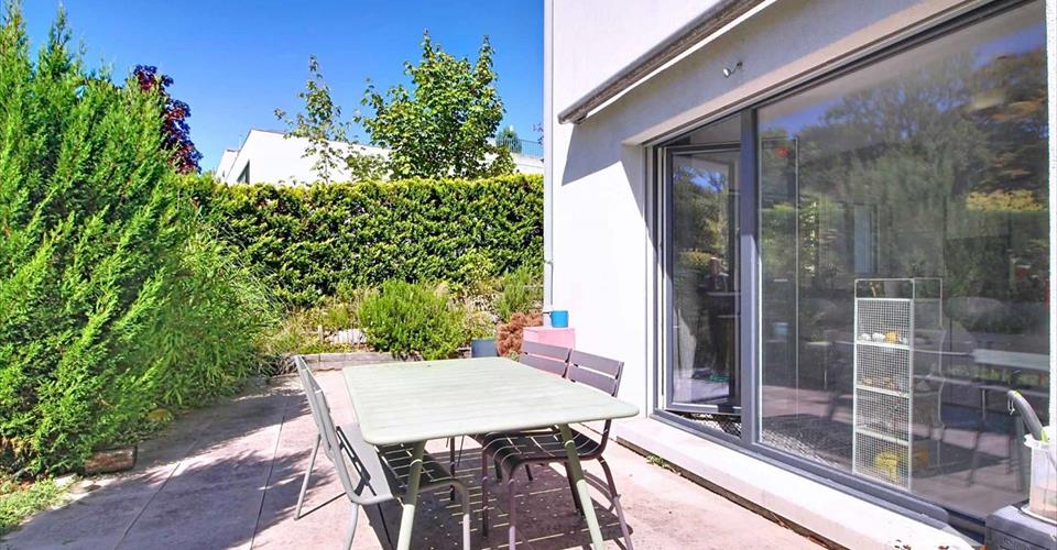 Située dans un quartier résidentiel à proximité immédiate du centre-ville de Nyon, cette maison contiguë contemporaine se trouve en pignon ouest d’une construction de 3 unités. Ce bien d’une surface habitable d’env. 157 m² sur 3 niveaux, se compose au rez-inférieur d’une grande entrée, d’une chambre, salle d’eau, cave et local technique. Le rez-supérieur d’une surface d’env. 58 m² accueil un vaste séjour/salle à manger, une cuisine ouverte entièrement agencée et équipée ainsi qu’un WC/visiteurs/buanderie. L’étage abrite la partie nuit, soit une chambre parentale avec salle d’eau, 2 chambres à coucher ainsi qu’une seconde salle de bains. Vous pourrez profiter d’une agréable terrasse de 25 m² ainsi que d’un jardin. Deux places de parking extérieures complètent cette offre. Vous avez toujours voulu vous établir à Nyon, à deux pas de toutes les commodités, appelez notre courtier pour une visite des lieux ! *** Volume ECA : 619 m³ Impôt foncier : 1.5‰