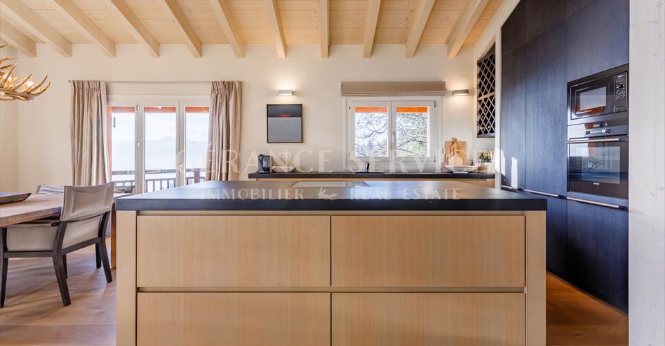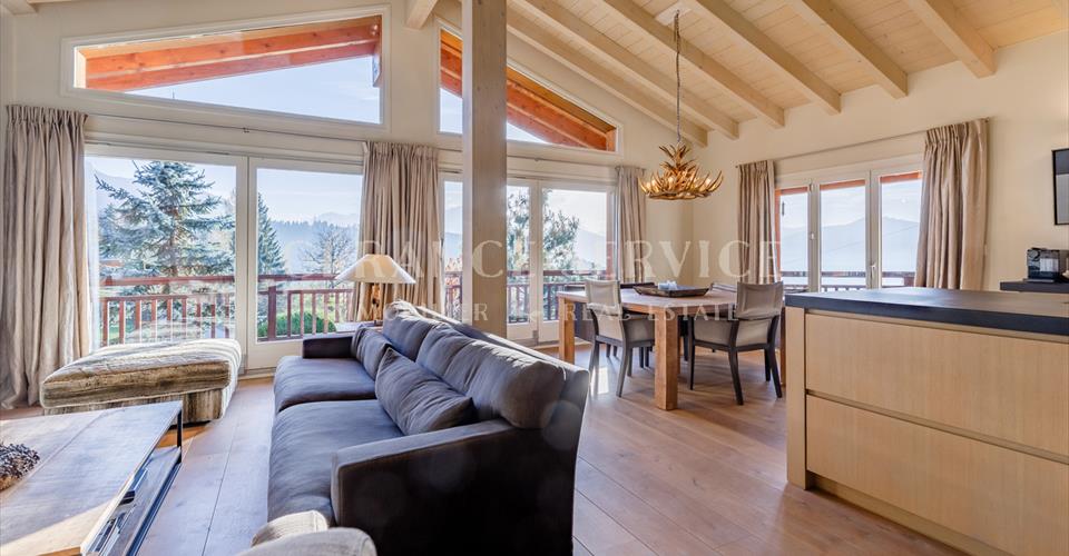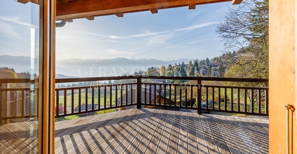 Ce chalet moderne, réparti sur deux niveaux, offre une vue imprenable et permet de profiter pleinement de la montagne en toute saison. Il dispose de 4 chambres à coucher, 3 salles de bain, d’un séjour lumineux et spacieux avec un espace mezzanine, ainsi que de deux garages box. Les extérieurs sont soigneusement entretenus.