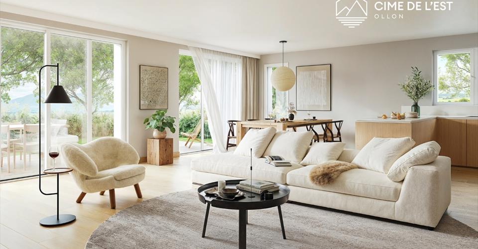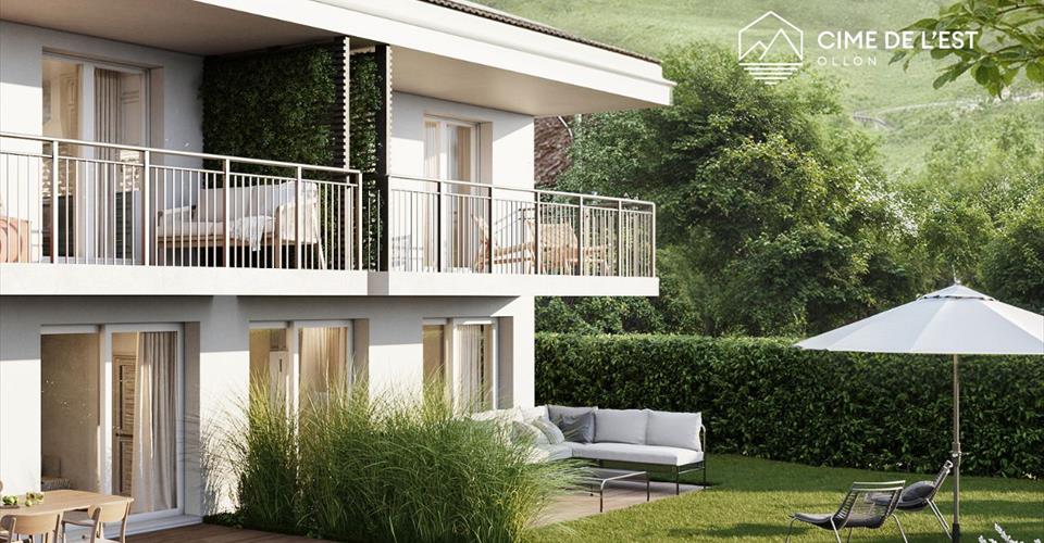 Nichée dans un quartier résidentiel calme et sans nuisances, la promotion Cime de l’Est offre un cadre de vie privilégié entre nature et commodités. Composée de deux villas mitoyennes et quatre appartements, cette réalisation à taille humaine séduit par son architecture contemporaine, son orientation plein sud et sa magnifique vue sur la Cime de l’Est. Chaque logement dispose d’un espace extérieur généreux, d’un jardin privatif et de deux places de parc. Le projet met l’accent sur la durabilité et le confort moderne, avec des équipements performants : triple vitrage, pompes à chaleur et panneaux photovoltaïques. Située à quelques pas de la gare, des écoles et des commerces du village, Cime de l’Est est une opportunité idéale pour les familles comme pour les personnes à la recherche de tranquillité. Lot 2 – Villa jumelle de 5.5 pièces – 127 m² habitables – Terrasse de 19.5 m², balcon de 13.5 m² – Jardin privatif de 352 m² – 2 places de parc (1 couverte + 1 extérieure) – Vue dégagée, orientation sud-ouest – Construction éco-performante Plus d’informations, plans et visuels sur : www.cime-est.ch.