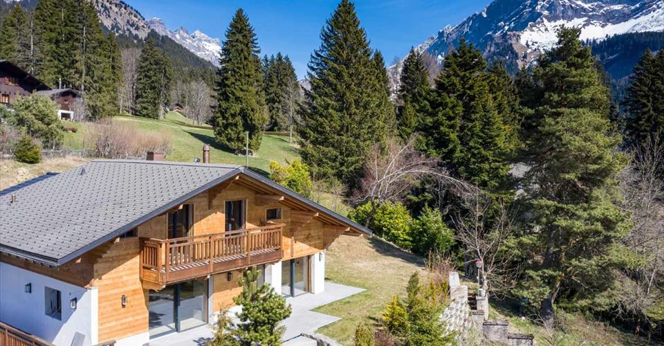 Ce splendide chalet de 5.5 pièces d’environ 250 m² est niché dans un environnement calme, sans vis-à-vis, il profite d’une situation dominante offrant une vue imprenable sur les Dents du Midi, dans un cadre de nature préservée baigné de soleil. Construit en 1960 sur une parcelle d’environ 1’000 m², il a été entièrement transformé et rénové en 2024/2025 avec des matériaux et des finitions d’excellentes qualité. Le chalet bénéficie de prestations haut de gamme : chauffage au sol par pompe à chaleur, ventilation double flux, panneaux solaires et photovoltaïques, volets électriques, fenêtres bois-métal à vitrage isolant, ainsi qu’un système d’éclairage extérieur. Réparti sur trois niveaux, le chalet propose : – 4 chambres, avec salle d’eau et dressing en suite – Une cuisine haut de gamme entièrement équipée – Un vaste séjour / salle à manger avec cheminée, s’ouvrant sur une terrasse – 3 terrasses exposées Sud, Est et Ouest pour profiter pleinement de chaque moment de la journée – Un espace bien-être privé avec hammam et sauna – Un grand garage pour 2 véhicules ainsi que plusieurs places de parc extérieures Vente autorisée aux étrangers non-résidents et en résidence secondaire.