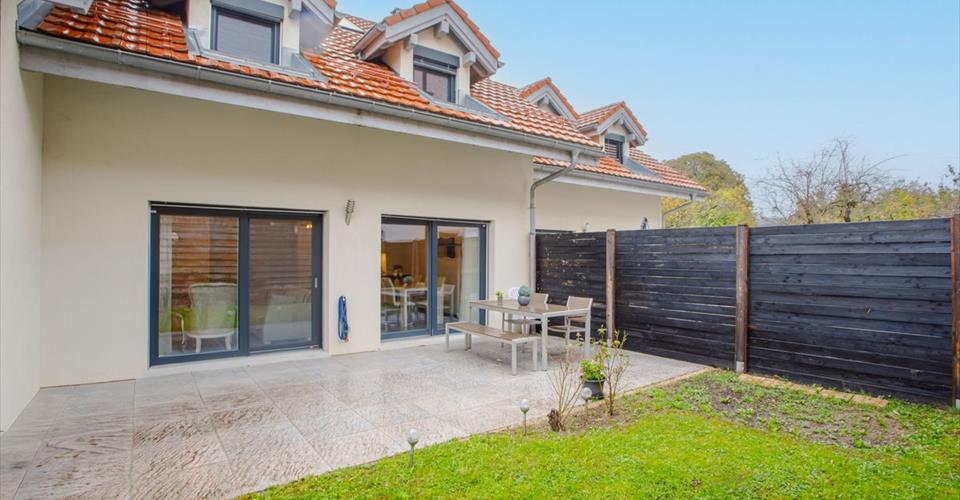 Harmonie et lumière au coeur d’Orges Au coeur d’un quartier paisible d’Orges, à quelques minutes seulement d’Yverdon et de ses commodités, se niche cette élégante villa contigüe de 5.5 pièces, tournée vers la lumière et ouverte sur une belle perspective du Chasseron. Érigée en 2016, cette maison contemporaine marie avec justesse la douceur d’une construction traditionnelle et le confort d’équipements modernes. Répartie sur trois niveaux et soigneusement entretenue, elle offre des espaces chaleureux où il fait bon vivre, sans aucun travaux à prévoir. Dès l’entrée, le rez-de-chaussée séduit par sa pièce de vie de 43 m², véritable coeur de la maison, où cuisine ouverte, séjour et salle à manger dialoguent harmonieusement, baignés de lumière et prolongés par une terrasse dallée et un jardinet accueillant. Un wc visiteurs et un réduit avec emplacement colonne lave/sèche complètent parfaitement ce niveau. L’étage est une invitation au repos : une suite parentale avec dressing et salle de bain privative, deux chambres lumineuses, une salle de douche élégante et un espace buanderie parfaitement pensé. Les combles aménagés révèlent une chambre mansardée pleine de charme, un cocon intime sous les toits. À l’extérieur, la terrasse se prête aux moments de convivialité, tandis que le jardin offre une touche de verdure. Un garage électrifié avec accès direct et une place de stationnement extérieure complètent les prestations. La villa profite d’un chauffage au sol, de panneaux solaires thermiques, d’une isolation performante et de fenêtres triple vitrage avec stores électriques : autant d’atouts qui garantissent confort et efficacité énergétique. Un lieu pensé pour conjuguer esthétique, praticité et douceur de vivre, où chaque détail invite à imaginer un quotidien serein et harmonieux.