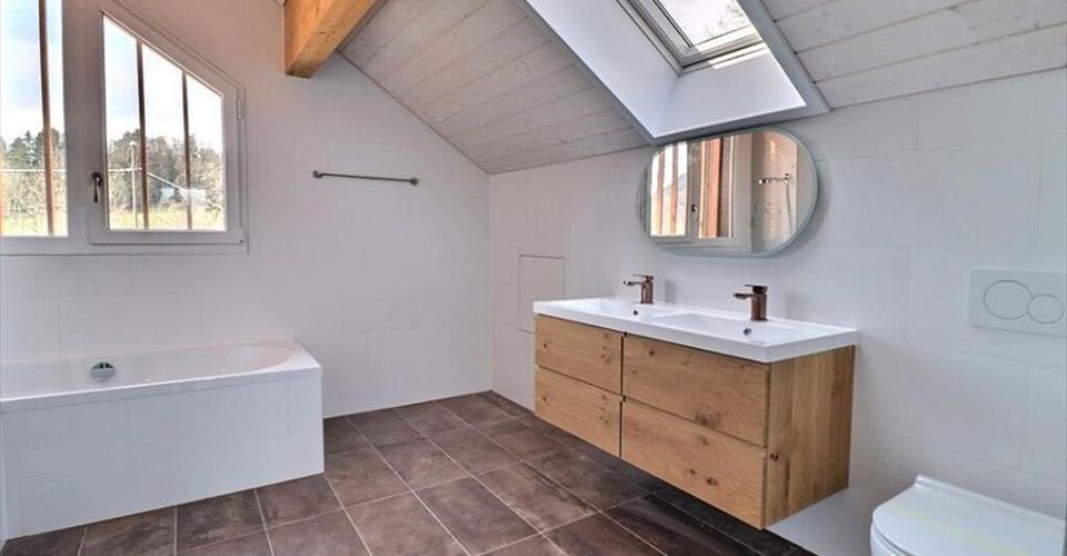 Rare à la vente! en pleine campagne proche de Puidoux, dans un endroit calme, intime et bucolique, maison de campagne mitoyenne reconstruite à neuf avec bâtiment rural annexe.