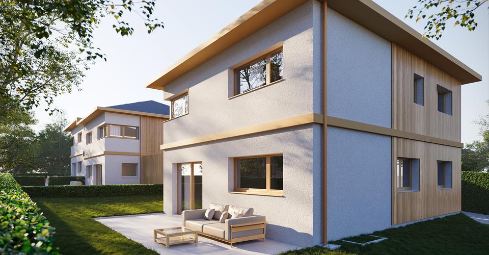NOUVEAU – Villas neuves à vendre à St-Sulpice (VD) Dans un environnement résidentiel calme et verdoyant, le projet Casa Aurea propose trois villas de standing, dont deux mitoyennes et une individuelle, alliant confort moderne, qualité architecturale et situation privilégiée. Caractéristiques principales – Lot 3 (Maison individuelle) : • Villas de 5.5 pièces ou 4,5 pièces, lumineuses et fonctionnelles • Surface habitable dès 122 m², répartie sur 2 niveaux • 3 salles de bains par villa • Grande terrasse et jardin privatif (210m²) • Couverte à voiture et place extérieure compris dans le prix • Pompe à chaleur • Panneaux solaires photovoltaïques Intérieurs : Les espaces de vie offrent de beaux volumes avec une cuisine ouverte sur salle à manger et salon, bénéficiant d’une belle luminosité grâce aux larges baies vitrées. Chaque villa dispose de trois chambres à coucher, dont une suite parentale avec salle de bain attenante. Les matériaux ont été soigneusement sélectionnés pour garantir un cadre de vie à la fois élégant et durable. Extérieurs : Chaque maison bénéficie d’un jardin privatif et d’une grande terrasse, idéale pour profiter des belles journées ensoleillées. L’architecture contemporaine du projet s’intègre parfaitement dans le paysage naturel du quartier. Situation : Situé dans la commune prisée de St-Sulpice, à quelques minutes de Lausanne, le projet bénéficie d’une localisation idéale, à proximité des écoles, transports publics, axes autoroutiers et des rives du lac Léman. 📍 Disponibilité : Construction livrée en été 2026 💰 Prix : CHF 2’150’000.– 🔗 Plus d’informations sur le site du projet : www.casaaurea.ch