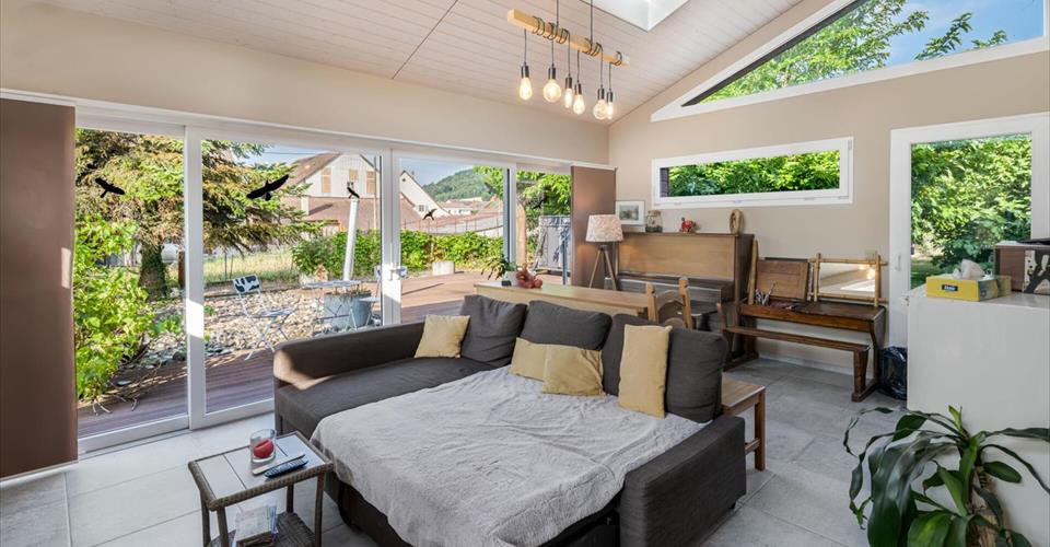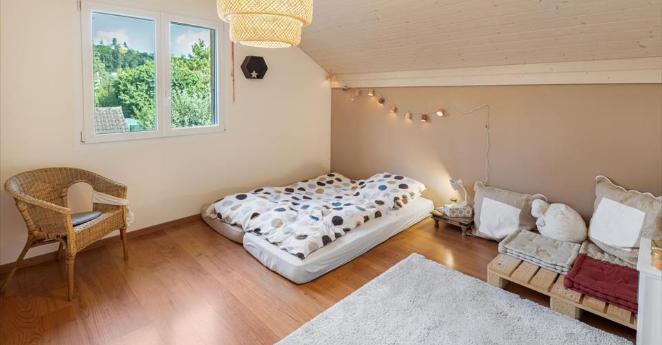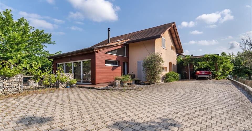 Un havre de paix pour la famille Située au calme absolu d’une impasse à Granges-près-Marnand, cette charmante villa individuelle de 5.5 pièces vous séduira par ses volumes généreux, sa luminosité et son jardin idéalement exposé. Édifiée en 2006 sur une parcelle de près de 900 m², elle a bénéficié d’une belle extension en 2012, offrant une grande pièce de vie traversante avec cuisine ouverte, coin repas, salon cosy et espace détente autour d’un poêle à bois. La maison se compose ainsi : Rez-de-chaussée : un grand hall d’entrée avec salle d’eau visiteurs avec buanderie intégrée / une chambre ou bureau / ainsi qu’un vaste espace de vie baigné de lumière comprenant une cuisine ouverte, un coin à manger, un coin détente avec un poêle à bois et un salon avec accès direct à la terrasse et au jardin. Étage : trois chambres à coucher / ainsi qu’une salle de bain équipée d’une baignoire et d’une douche. Sous-sol : une grande cave et un local technique. Côté technique, elle coche toutes les cases : chauffage par pompe à chaleur géothermique, 4 places de parc extérieures, 1 place couverte, et une situation exceptionnelle entre le calme d’un impasse et la proximité directe aux commerces. Le jardin verdoyant et la grande terrasse permettent de profiter pleinement des beaux jours. Granges-près-Marnand : un équilibre idéal entre nature et commodité Granges-près-Marnand, commune dynamique de la Broye vaudoise, offre un cadre de vie paisible tout en restant parfaitement connectée aux grands pôles économiques régionaux. Nichée entre Payerne, Moudon et Lucens, elle séduit par son ambiance villageoise chaleureuse, ses commerces de proximité, ses établissements scolaires, ainsi que sa gare CFF bien desservie, reliant Lausanne et Fribourg en moins d’une heure. Les amoureux de nature apprécieront les nombreuses balades en campagne, les pistes cyclables et les rives de la Broye toutes proches. Ici, on vit dans un environnement verdoyant et calme, sans renoncer aux commodités du quotidien. Un lieu idéal pour les familles, les actifs et tous ceux qui recherchent un vrai sentiment d’espace et de tranquillité à deux pas des centres urbains. De plus la villa se situe à moins de 5 minutes des écoles, commerces et transports, et à 10 minutes de l’autoroute, cette propriété offre un cadre de vie parfait pour les familles recherchant allier confort et tranquillité.