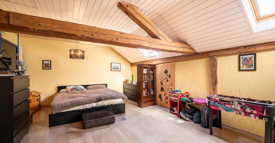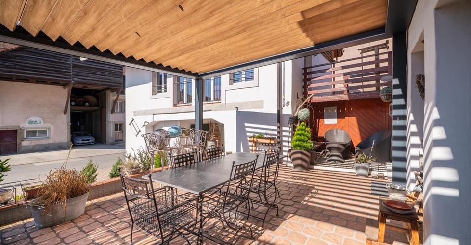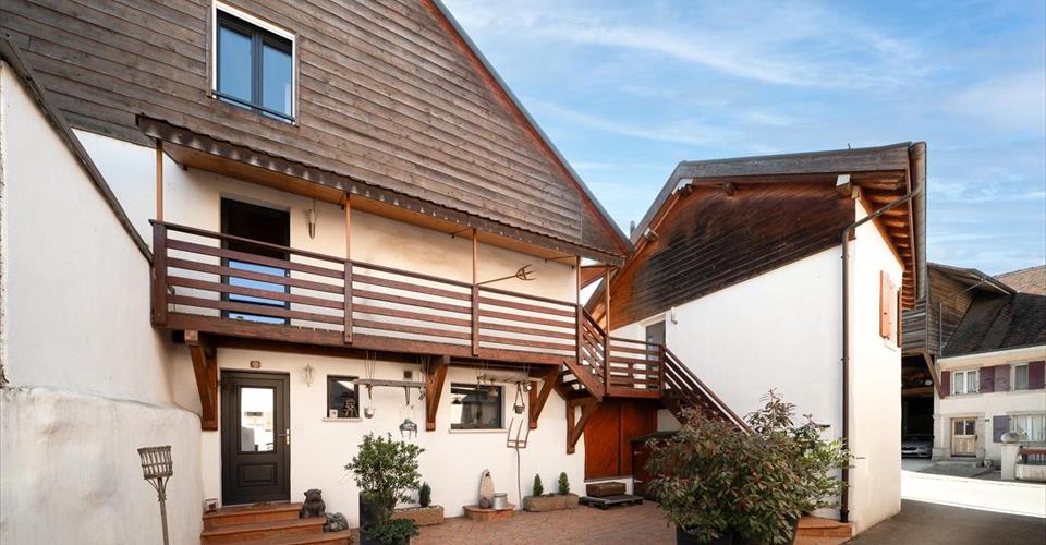 Coup de coeur garanti pour ce bien situé à quelques minutes d’Yverdon et des axes autoroutiers, au centre du village de Valeyres-sous-Ursins. C’est un village agréable et accueillant, idéal pour une famille. Il s’agit d’une ancienne maison paysanne entièrement rénovée en 2003 et divisée en 2 appartements. Le logement en vente, d’une surface habitable d’environ 180 m2, vous séduira par son charme et sa conception unique. Une annexe indépendante, également rénovée en 2003, fait partie intégrante de la vente. Elle est actuellement aménagée en bureau avec mezzanine et salle de douche. La surface habitable est d’environ 54 m2. Une cuisine pourrait y être aménagée pour en faire un studio. Une terrasse d’environ 30 m2 avec pergola automatisée, un garage-atelier ainsi qu’une place de stationnement permettant le parcage de 2 à 3 voitures complètent ce bien. Ce bien soigné et bien entretenu par ses propriétaire mérite la meilleure attention et une visite s’impose. Les enfants de Valeyres-sous-Ursins sont scolarisés à Yverdon-les-Bains. Des transports scolaires sont organisés. L’accueil préscolaire, parascolaire ainsi que l’accueil familial de jour est assuré par le RéAjy (Réseau d’accueil de jour des enfants d’Yverdon-les-Bains et environs). Demandez un dossier complet et contactez-moi pour une visite. Coralie Anker Immobilier Tél Mail