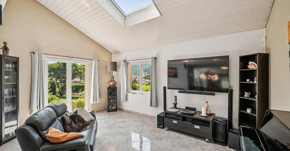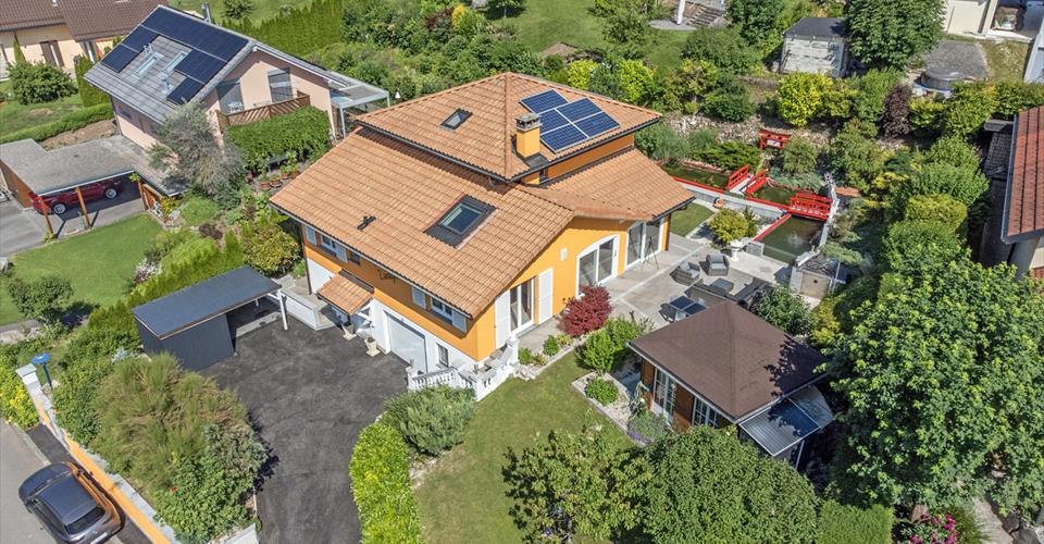 Située dans un quartier résidentiel prisé de Vallorbe, cette maison individuelle en excellent état bénéficie d’une situation dominante, d’un ensoleillement optimal et d’un agencement idéal pour une vie confortable, pratique et familiale. Elle se trouve à seulement 15 minutes d’Orbe et à proximité directe des transports (gare du Day – Lausanne à 35 min en train). Rez-de-chaussée supérieur Spacieuse salle à manger lumineuse avec cuisine ouverte entièrement équipée Four à pizza traditionnel intégré Séjour chaleureux avec grande hauteur sous plafond et poêle à bois Salle de bains équipée d’une douche à l’italienne, d’un lavabo, de toilettes et d’une baignoire d’angle puis d’un espace dressing Chambre parentale Étage Deux chambres à coucher, chacune équipée de leur propre espace dressing Grand hall de distribution de plus de 7 m², idéal pour un coin bureau Salle d’eau Rez-de-chaussée inférieur Garage double avec porte motorisée et espace atelier Cave à vin Espace de rangement supplémentaire Économat prévu pour congélateur, réfrigérateur et réserves Chambre d’amis avec douche attenante WC indépendant avec lavabo Buanderie Chauffage au sol au gaz – consommation mensuelle estimée à 220 CHF Extérieurs Jardin entretenu avec potager Grande terrasse de 50 m² exposée plein sud Terrain clôturé, idéal pour les animaux Chalet bien-être équipé d’un jacuzzi 6 à 7 places Terrain de pétanque Trois places de parc extérieures Grand abri pour le bois Portail électrique Triple vitrage, stores électriques et volets en aluminium 10 panneaux solaires pour un meilleur rendement énergétique Une maison familiale parfaitement entretenue, aux nombreux espaces et fonctionnalités pratiques, dans un environnement calme et lumineux. À découvrir sans tarder.