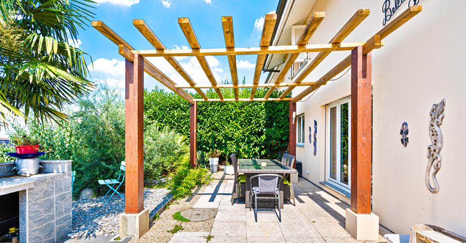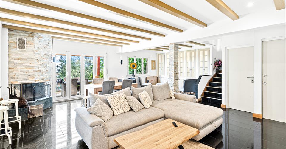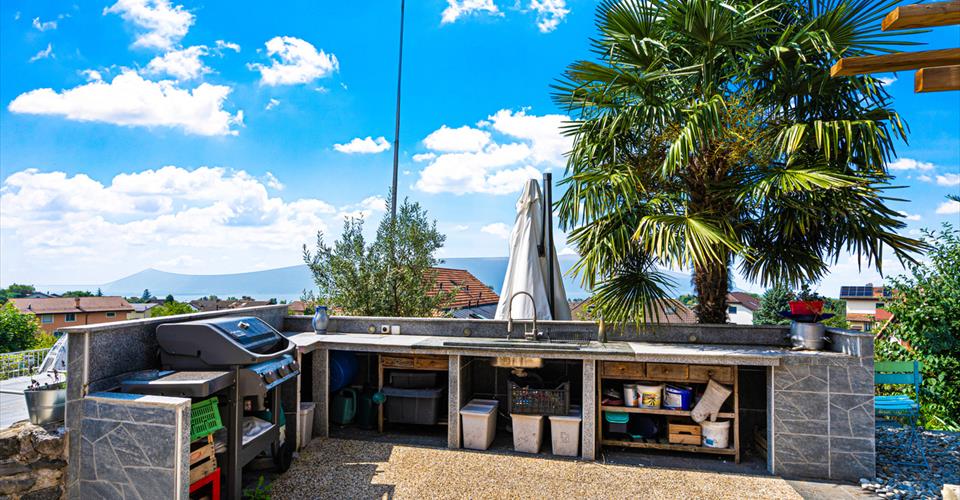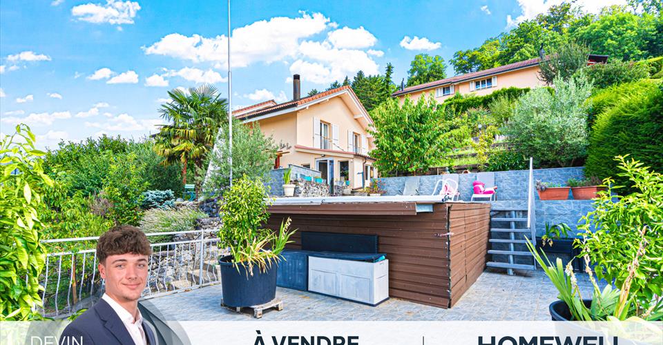 Maison mitoyenne d’exception à St-Légier – Élégance, sérénité et confort Située dans un quartier résidentiel recherché et très calme de St-Légier à 5 minutes de Vevey, cette magnifique maison mitoyenne, construite en 1997, séduit par ses volumes généreux, son style moderne et son atmosphère chaleureuse. À l’intérieur, de vastes espaces lumineux s’articulent autour d’une cuisine spacieuse parfaitement équipée, ouverte sur un élégant salon avec cheminée. Chaque détail a été pensé pour offrir un cadre de vie convivial, raffiné et fonctionnel. À l’extérieur, un vaste jardin paysagé orné de belles plantations et de grandes terrasses invite à la détente. Vous y trouverez une cuisine extérieure aménagée, idéale pour recevoir en plein air, ainsi qu’un charmant chalet en bois abritant un jacuzzi, pour des moments exclusifs de bien-être en toute intimité. Disposition de la maison : Rez-de-chaussée : grande cuisine moderne, lumineux salon avec cheminée, réduits pratiques, salle de bain avec douche à l’italienne. 1er étage : chambres spacieuses et lumineuses, grande salle de bain avec baignoire, pièce supplémentaire idéale pour dressing, accès au galetas et vue lac. Sous-sol : cave transformée en élégante cave à vin, abri PC réaménagé en chambre avec salon, espaces de rangement fonctionnels. Un lieu rare, alliant élégance, confort moderne et sérénité, à seulement quelques minutes de Montreux et Vevey.