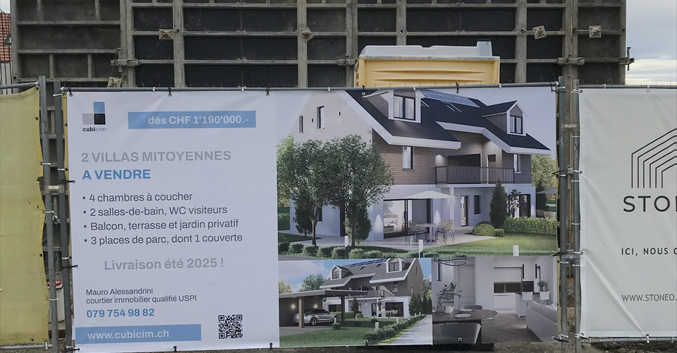 UN LIEU DE VIE PRIVILEGIE POUR LES FAMILLES A CRONAY cubicim présente au coeur du village de Cronay, situé dans le district du Jura-Nord Vaudois, à 6 km d’Yverdon-les-Bains et 10 km des plages d’Yvonand, une nouvelle promotion de 2 villas mitoyennes de 5.5 pièces en PPE, idéale pour les familles, et dont la livraison est prévue pour l’automne 2025. La villa B est déjà vendue! L’environnement est calme, avec une vue dégagée sur la campagne du Jura, et face à une place de jeux pour les petits. L’architecture moderne de ces villas orientées plein Sud offre des espaces harmonieux, baignés de lumière naturelle. VOTRE INTERIEUR Surfaces PPE : Villa A env. 143 m2 Villa B env. 157 m2 – VENDUE ! Rez-de-chaussée : Hall d’entrée avec WC visiteurs Séjour avec espace à manger, accès direct à la terrasse Cuisine ouverte sur séjour 1 réduit 1er étage : 3 chambres à coucher, dont 2 avec balcon 1 salle-de-bain Combles : 1 suite parentale avec salle-de-bain Buanderie / Local technique Galetas Extérieurs : 1 jardin d’env. 79 m2 villa A et env. 156 m2 villa B 1 terrasse d’env. 40 m2 villa A et env. 48 m2 villa B 2 places de parc extérieures 1 couvert à voiture 1 réduit EFFICIENCE ENERGETIQUE Le chauffage est assuré par une pompe à chaleur, avec distribution au sol. L’efficience énergétique se trouve renforcée par des capteurs solaires photovoltaïques ainsi que des fenêtres en triple vitrage. UN ENVIRONNEMENT FAMILIAL La promotion se situe au coeur du village de Cronay. L’endroit est calme. Une place de jeux pour enfants fait face aux villas. Sur le côté Sud, un grand jardin et une magnifique terrasse offrent une vue dégagée sur la campagne environnante du Jura. L’environnement est paisible, préservé de la circulation, et définitivement idéal pour une vie de famille. POINTS FORTS DE CET OBJET Nouvelle promotion livrée pour l’automne 2025 Villas orientées plein Sud Finitions de qualité aux choix des acquéreurs Pièces à vivre spacieuses et lumineuses Cadre de vie villageois et privilégié PRIX DE VENTE ET DISPONIBILITE Prix de vente: CHF 1’060’000.- villa A, la villa B à CHF 1’120’000.- est déjà VENDUE ! Places de parc: CHF. 30’000.- / villa pour 1 couvert + 2 places de parc extérieures Disponibilité: Automne 2025 Un dossier de vente ainsi que d’autres documents et renseignements sont à votre disposition sur demande. Toutefois, afin de mieux vous rendre compte des différentes opportunités offertes, n’hésitez pas à prendre contact avec nous pour une visite. Lors de votre requête, nous vous remercions d’indiquer vos coordonnées complètes, y compris votre numéro de téléphone. Pour tout renseignement ou une visite sur place, contactez: Mauro Alessandrini 079 754 98 82 m.alessandrini@cubicim.ch N.B.:Informations indicatives, celles-ci devront être vérifiées indépendamment par l’acheteur.