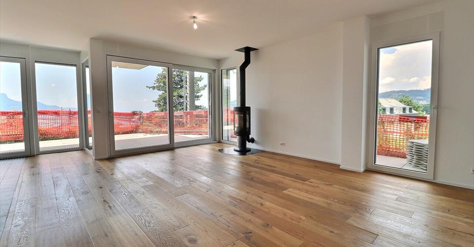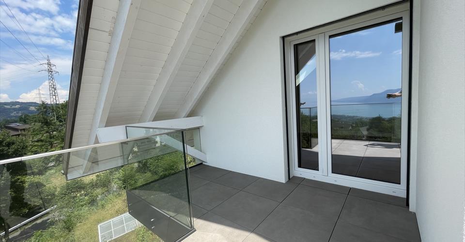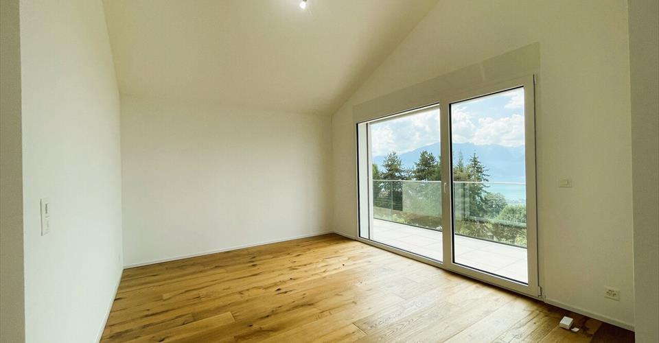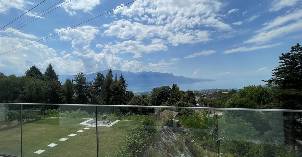Localisation Située sur la commune de Blonay, la villa offre une vue spectaculaire sur le lac Léman et les Alpes. Elle se trouve à proximité d’un arrêt de train dans un quartier résidentiel calme. Caractéristiques Villa récente de 5,5 pièces Environ 170 m² habitables Parquet en bois massif dans les pièces de vie et les chambres Stores à commande électrique Terrasses sur les deux niveaux Finitions soignées et matériaux modernes Rez-de-chaussée Hall d’entrée spacieux Grand séjour lumineux avec poêle Cuisine moderne ouverte avec îlot central faisant également office de table à manger, grand frigo, congélateur indépendant et cave à vin intégrée Bureau Salle de douches/WC Étage Deux chambres Une salle de bains/douches/WC Grande suite parentale avec dressing, salle de douches/WC privative et terrasse panoramique Sous-sol Plusieurs caves et locaux de rangement Branchement pour machines à laver et sèche-linge Stationnement Garage souterrain pour 2 voitures 1 place de parc extérieure Loyer et conditions CHF 4’500.–/mois Charges individuelles Disponible de suite Contrat de bail possible de 6 à 12 mois Autres conditions sur demande