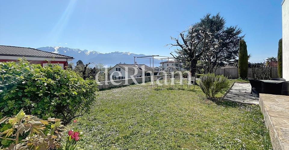 Nichée au coeur des vignes, à seulement quelques minutes du centre de Vevey, cette splendide propriété de 5.5 pièces entièrement rafraichie est distribuée sur 2 niveaux, pour une surface totale d’environ 200m2. De style contemporaine et très élégante, la propriété bénéficie d’une vue dégagée sur les Alpes et les vignobles du Lavaux. La typologie a été pensée de façon à offrir des pièces spacieuses et lumineuses qui contribuent à une extraordinaire sensation de bien-être. Cette propriété plein d’histoire, jouit de deux belles terrasses et d’un jardin joliment arboré et clôturé La villa est distribuée de la manière suivante : Rez: – Hall dentrée avec vestiaire – Spacieuse cuisine habitable entièrement équipée – Salle à manger lumineuse avec accès direct à lextérieur – Séjour avec une hauteur sous plafond de 4 m et une cheminée dune rare élégance – WC visiteurs – Une chambre à coucher avec salle de douche/WC attenante Etage: – Deux chambres à coucher, dont une avec accès à un balcon – Salle de bains avec WC Sous-sol: – Grand espace de rangement – Cave/local technique avec colonne de lavage Annexes : – Chauffage individuelles en sus – Entretien du jardin en sus – Trois places de parc extérieures Une visite simpose laissez-vous séduire par le charme de cette villa !