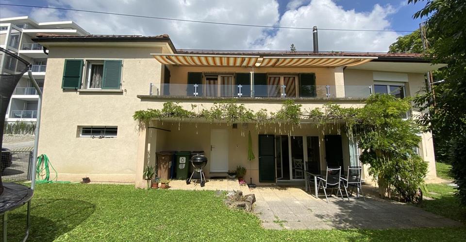 Villa individuelle familiale à deux pas de Chailly ! Dans un quartier calme, à l’écart de la circulation, mais très proche de toutes commodités, charmante villa très confortable, rénovée en 2008, cette villa individuelle de 5,5 pièces se compose comme suit : Au rez: garage cave buanderie chaufferie WC séparé cuisine moderne ouverte sur séjour avec accès au jardin /terrasse Au premier : un hall 4 chambres à coucher une salle de bains/jacuzzi avec lavabo double/WC une salle de douche/WC un galetas un grand balcon 2 places de parc extérieures Loyer : CHF 4’530.- + charges individuelles (pompe à chaleur)
