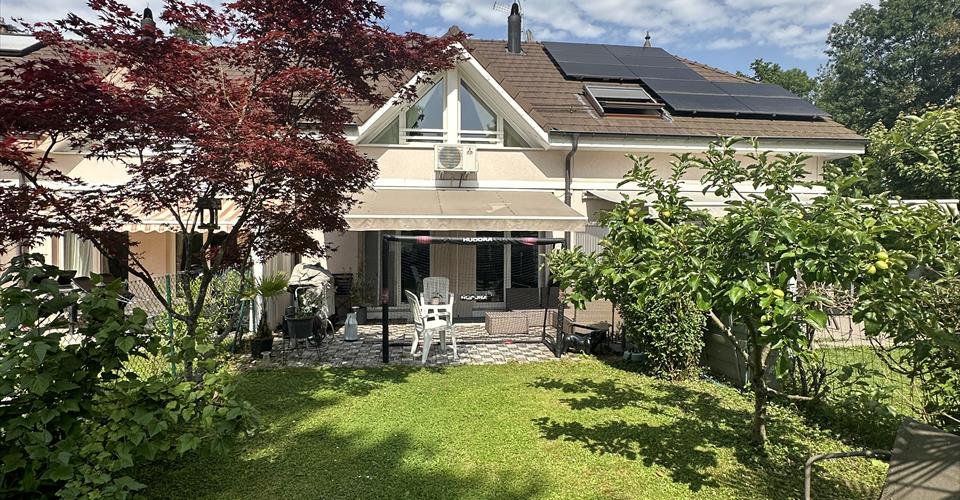 Charmante maison idéale pour le télétravail – avec sauna et parking Cette maison de 3 chambres, complétée par une mezzanine parfaitement adaptée au travail à distance, offre un cadre de vie aussi pratique qu’agréable. Elle comprend également un studio indépendant au rez-de-chaussée avec WC et douche, idéal pour recevoir ou aménager un espace de travail supplémentaire. Profitez d’un salon chaleureux agrémenté d’une cheminée pour vos soirées d’hiver. À l’extérieur, un charmant jardin accueille un cabanon avec sauna, construit en 2020, parfait pour vos moments de détente. Atouts supplémentaires : 3 places de parking devant la maison À proximité immédiate de l’arrêt de bus 45 À seulement quelques minutes de Carouge et du centre-ville de Genève Plusieurs écoles accessibles rapidement Location partiellement meublée
