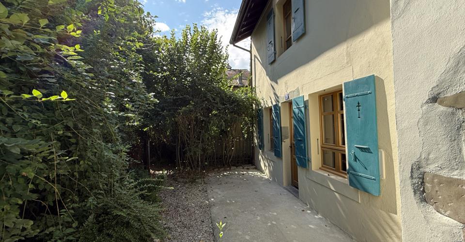 Située dans un environnement calme et authentique, cette maison mitoyenne de 127 m² allie le charme de l’ancien au confort contemporain. Actuellement en cours de rénovation, elle sera livrée clé en main. Répartie sur trois niveaux, elle offre des volumes généreux, une belle luminosité traversante et un jardin privatif. Les futurs acquéreurs ont la possibilité de personnaliser entièrement les finitions et la disposition intérieure. Une fois vos choix définis, un délai d’environ quatre mois est nécessaire pour finaliser les travaux. Rez-de-chaussée : Cuisine ouverte sur une salle à manger de 15 m², idéale pour les repas en famille ou entre amis. Séjour lumineux de 22 m², parfait pour se détendre. WC visiteurs. Premier étage : Une chambre de 16 m² avec salle de douche privative et accès indépendant par escalier extérieur : ce volume peut très facilement être transformé en studio autonome, bureau professionnel ou espace indépendant selon les besoins. Une deuxième chambre de 10 m² ainsi qu’une deuxième salle de bains de 3,8 m². Deuxième étage : Combles aménagés de plus de 25 m² de surface utiles avec sa salle de bains attenante. Espace sous pente avec deux Velux, offrant une belle lumière naturelle. Possibilité d’aménagement supplémentaire selon vos besoins (bureau, dressing, coin détente, etc.). Extérieur : Terrasse privative de 30 m² situé à l’avant de la maison ainsi qu’un jardin privatif de 55 m² situé à l’arrière de la maison. Garage double et place pour scooter disponibles à la vente en supplément. Parties communes : Local technique de 25 m² et système de chauffage commun, permettant une gestion simplifiée et des coûts réduits. Informations complémentaires : Le bien est éligible au dispositif Casatax, permettant aux acquéreurs de bénéficier de frais de notaire réduits. Il s’agit d’un bien rare, dans un cadre villageois recherché, à proximité immédiate de Genève et des commodités.