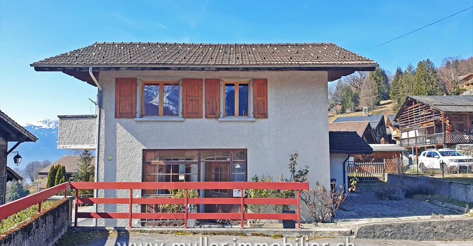 Sympathique maison villageoise de 5 pièces avec 133 m2 habitables, sise sur une parcelle de 193 m2 au cœur des Posses-sur-Bex. Véranda avec jolie vue sur les Alpes, idéale pour une famille. Proche des pistes de ski de Villars et de La Barboleuse alors qu’en été, pendant ces fortes chaleurs, ici, c’est la fraicheur qui domine. À 15 min de l’autoroute. CONFORT Situation : est-sud-ouest Environnement : village Vue : Les Alpes Jardinet Balcon Terrasse Poêle Chauffage mazout par radiateurs, au sol dans le salon Nombre de pièces : 5 pces + 1 cuisine habitable Surface habitable : 133 m2 Surface utile : 196 m2 Surface parcelle : 193 m2 Année de construction : 1955 Dernières rénovations : 2023 Volume de la maison : 578 m3 Nombre de salles d’eau : 3 Altitude : 896 m Un garage Disponibilité : à convenir ACCÈS À 1 min à pied de l’arrêt du bus À 5 min à pied de la gare À 5 min en voiture des petits commerces et des pistes de ski À 15 min en voiture de Bex et de l’autoroute REZ SUPERIEUR Véranda d’entrée, hall, WC visiteurs, cuisine habitable, salon avec véranda, chambre avec douche. ETAGE Hall, trois chambres dont deux donnant sur le balcon, une salle de bain-wc. REZ INFERIEUR Garage avec un réduit, cave et local technique, bûcher. EXTERIEUR Terrasse et jardinet.