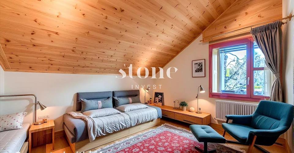 STONE INVEST vous présente cette charmante maison jumelée à Commugny proche des transports qui ravira une famille en quête d’une maison avec jardin à Terre Sainte. D’une surface habitable de 173m2 et de 255m2 utile (sous-sol aménagé de 82m2 inclus). elle se compose comme suit: REZ-DE-CHAUSSÉE: Entrée WC visiteurs avec lavabo Salon avec cheminée et salle à manger Cuisine fermée Chambre ou bureau ETAGE: 3 chambres dont une avec dressing sur-mesure Une salle de bain Une salle de douche avec WC SOUS-SOL: Grande salle polyvalente/salle de jeux Cave Buanderie/local technique Garage intérieur pour une voiture EXTERIEUR: Beau jardin arboré bien entretenu Une piscine hors-sol L’arrêt de bus le plus proche se situe à 5 minutes à pieds de la maison et vous emmènera à la Gare de Coppet en 8 minutes seulement. Contactez-nous dès à présent pour recevoir de plus amples informations sur ce bien!