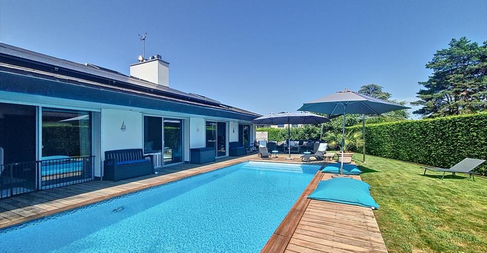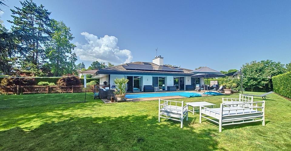 Cette villa individuelle d’environ 420 m² de surface utile est une occasion rare sur le marché. Située sur une parcelle exceptionnelle de 1568 m², elle est attenante à des vignes et ne subit aucune nuisance. La commune de Founex, entre Nyon et Genève, offre une qualité de vie inégalée. À l’intérieur, la villa se compose comme suit : au rez-de-chaussée, vous trouverez un hall d’entrée avec penderie et espaces de rangement. La cuisine ouverte, avec ses finitions luxueuses, s’ouvre sur un vaste séjour avec cheminée et une salle à manger, créant un espace convivial. Le séjour donne accès à une grande terrasse qui surplombe la piscine. Ce niveau comprend également trois chambres à coucher, chacune avec son dressing et salle de bain privative, ainsi qu’un WC visiteurs. Au premier étage, une grande mezzanine habitable offre la possibilité d’aménager un deuxième salon ou une autre pièce de vie selon vos envies. Le sous-sol comprend le garage de deux places avec accès direct à la maison , un studio indépendant d’environ 45 m² avec salle de douche privative et son accès indépendant, une cave à vin, une buanderie avec espaces de rangement, un local technique pour la piscine et la pompe à chaleur air-eau, ainsi qu’un espace supplémentaire avec une cuisine, des rangements et même un coffre-fort. À l’extérieur, la villa dispose d’une cour avec places de parking couvertes et borne de recharge pour voiture électrique, ainsi qu’une rampe d’accès au garage. Le grand jardin, bien arboré, comprend une terrasse, une piscine chauffée, un coin zen / jardin japonais avec un étang, un potager, un cabanon de jardin alimenté en électricité, un abri à bois et un arrosage automatique. Rénovée avec soin, la villa utilise des matériaux de grande qualité et est conçue pour accueillir tous les types de personnes, y compris celles à mobilité réduite. Cette maison allie confort et fonctionnalité, offrant un cadre de vie exceptionnel. Elle est chauffée par une pompe à chaleur et possède des panneaux solaires. Nous attirons votre attention sur le fait qu’il existe un potentiel constructible pour ajouter un étage de dimension équivalente ! Le taux fiscal de Founex est particulièrement attractif : 0.57 Appelez-nous sans tarder pour une visite du bien !