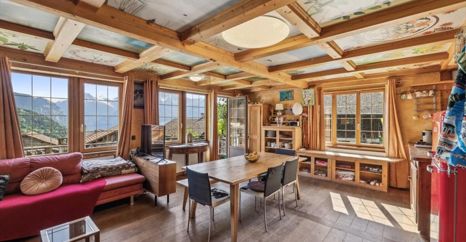 À vendre à Les Posses-sur-Bex, ce chalet réparti sur plusieurs niveaux offre un cadre montagnard authentique et paisible. Situé au cœur du village, il bénéficie d’une orientation plein sud, assurant un ensoleillement optimal et une vue panoramique imprenable sur les montagnes environnantes. Construit en 1980, ce bien allie cachet alpin et fonctionnalité. -À 300 m des transports publics (arrêt de bus et gare CFF de Bex) -À moins de 10 minutes en voiture des commerces, écoles et restaurants du centre de Bex -Accès facile aux axes routiers, à l’autoroute A9 et à la station de Villars-Gryon / Portes du Soleil -Opportunité rare pour les personnes en quête de tranquillité, de nature et de panoramas alpins, tout en restant bien connecté aux infrastructures régionales. -Le bien est vendu avec parcelle indépendante, située à quelques mètres de 705 m² en zone constructible, offrant un potentiel de développement ou d’agrandissement particulièrement intéressant.