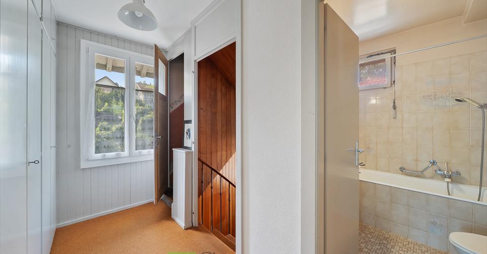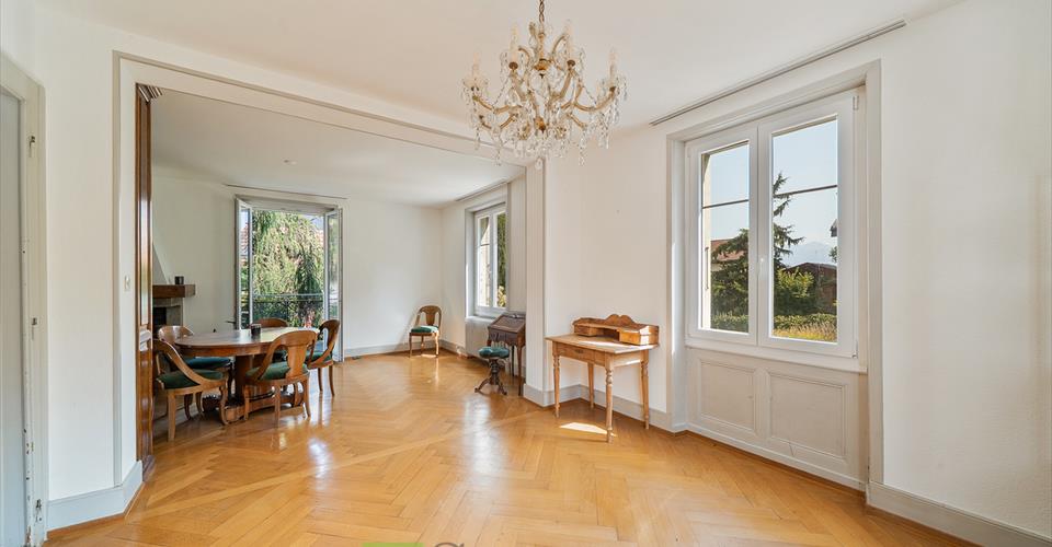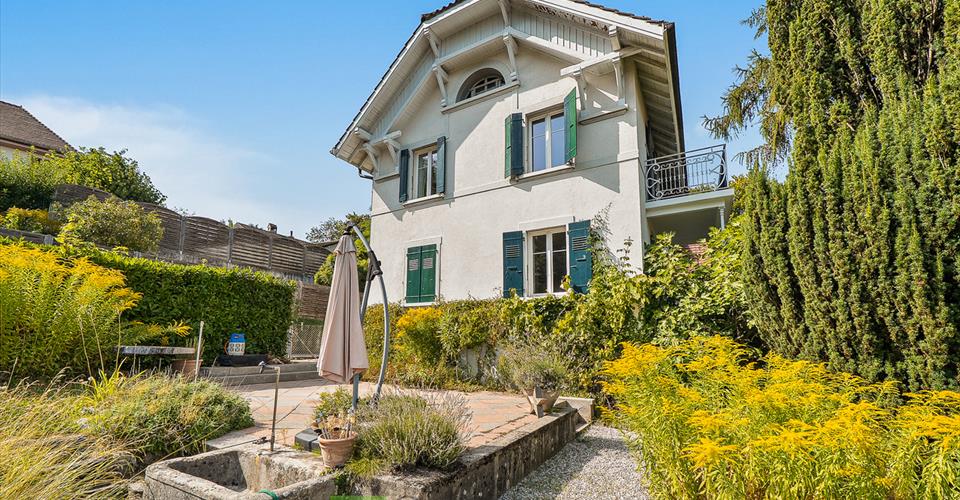 À l’abri des regards, dans un quartier résidentiel prisé, cette villa individuelle de 5 pièces vous attend. Entourée d’un jardin privatif arboré, cette propriété est un véritable havre de paix, idéal pour profiter de moments de calme et de détente en extérieur. Idéalement située, à seulement quelques minutes du centre-ville, cette élégante villa d’environ 200 m² séduit par son charme intemporel, sa vue dégagée sur le lac et son ensoleillement optimal tout au long de la journée. Elle offre de beaux volumes, comprenant un vaste séjour avec cheminée, trois chambres à coucher, deux salles d’eau, deux balcons et un grand jardin privatif. Construite en 1910, la villa a été entièrement rénovée en 1969, puis régulièrement entretenue (remplacement du système de chauffage, changement des fenêtres, etc.). Elle se trouve en bon état général, bien que des améliorations énergétiques puissent être envisagées pour se conformer aux standards actuels. Un garage fermé ainsi que deux places de stationnement extérieures complètent ce bien rare à la vente. Rez-de-chaussée : Hall d’entrée accueillant Grand séjour lumineux avec cheminée et accès à la terrasse Cuisine spacieuse et conviviale Vaste séjour avec cheminée Balcon avec une échappée sur le lac Jardin 1er étage : Chambre principale orientée sud avec accès à un balcon Deux autres chambres confortables (Est et Ouest) Salle de bains Combles : Espace aménageable selon vos envies : bureau, chambre d’amis ou salle de jeux Sous-sol : Chaufferie Buanderie Cave Ne laissez pas passer cette opportunité rare ! Contactez nous dès aujourd’hui pour organiser une visite – Madame Sev SELIMI