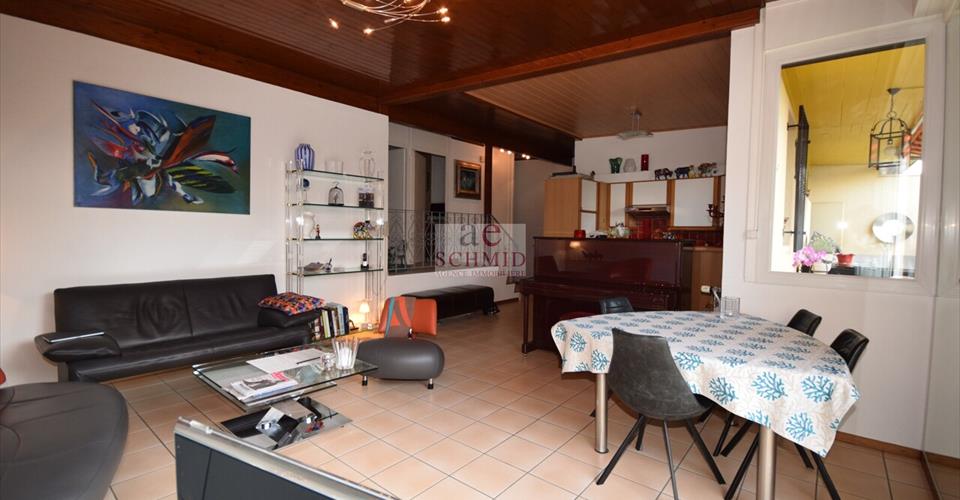 Cette maison mitoyenne par le garage, de plain-pied offre une surface utile brute d’environ 141 m², idéalement agencée pour un cadre de vie fonctionnel et convivial. Au rez-de-jardin, l’espace jour comprend un hall d’entrée, une salle de bains complète, une cuisine ouverte sur un séjour lumineux avec accès direct à l’extérieur. Quelques marches mènent à l’espace nuit, composé de trois chambres à coucher, dont deux avec balcon, offrant un espace intime et confortable. Le sous-sol dispose d’une grande pièce polyvalente et d’une buanderie. Implantée sur une belle parcelle paysagée d’environ 500 m², la maison profite d’une agréable terrasse idéale pour les moments de détente et d’un magnifique jardin bien entretenu. Un garage, une place de parking extérieure couverte et une autre non couverte complètent le bien. Dans le lotissement, plusieurs villas partagent une parcelle commune d’environ 1’800 m², située à proximité immédiate de l’entrée de la maison. Cet espace verdoyant constitue un cadre agréable, idéal comme aire de jeux pour les enfants, et accueille également la chaufferie commune. Un parking visiteurs est également mis à disposition, complétant ainsi les commodités offertes par le lotissement. Charges : CHF 250./mois pour l’entretien du parc et le chauffage CHF 400.-/mois pour l’électricité et l’eau Le fond de rénovation est de CHF 34’500.-. La villa est actuellement louée et sera disponible à partir de fin janvier 2027. Bien qu’elle nécessite une remise au goût du jour, cette maison offre un beau potentiel de personnalisation. Plusieurs rénovations ont déjà été réalisées par les anciens propriétaires : Remplacement des fenêtres et portes-fenêtres Remplacement de la porte d’entrée Installation d’une alarme Remplacement du parquet côté nuit Remplacement du lavabo dans la salle de bains Création d’une baie vitrée dans le séjour Isolation de la toiture Remplacement du tableau électrique et installation de prise triple