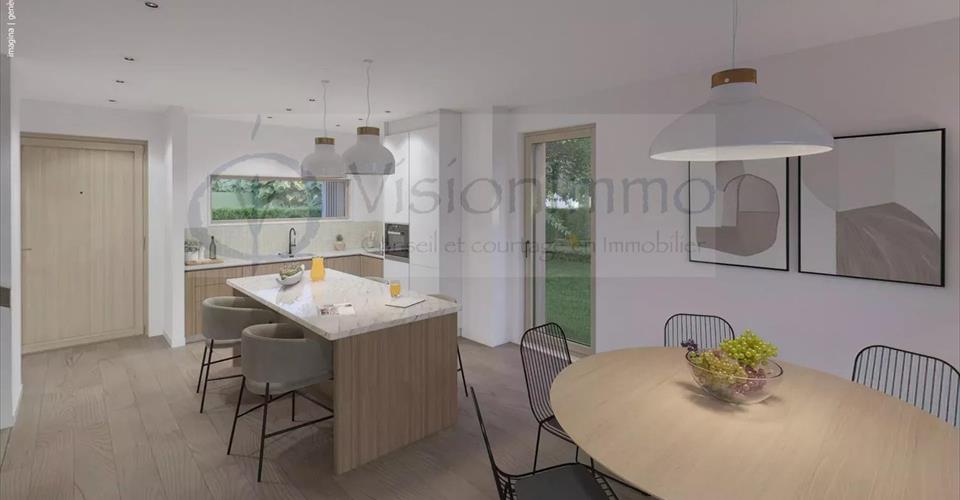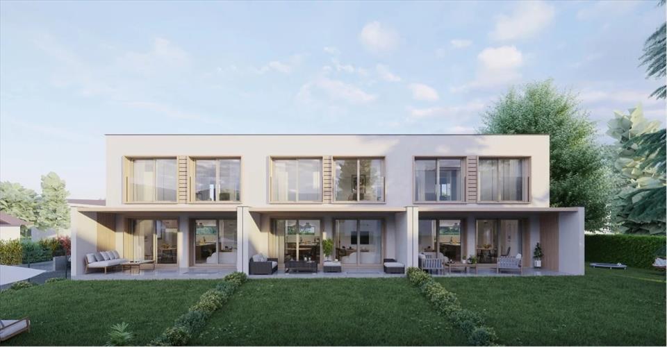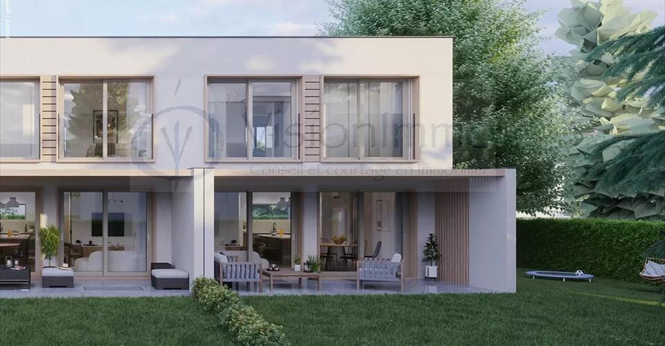 Situées dans un cadre agréable et verdoyant, ces villas mitoyennes d’une superficie brute d’environ 125 m² offrent des espaces modernes et fonctionnels, pensés pour le confort d’une vie de famille. Au rez-de-chaussée, vous trouverez une cuisine ouverte sur un lumineux séjour, un vestiaire ainsi qu’un WC visiteurs. L’étage se compose de trois chambres et de deux salles de bains, idéales pour répondre aux besoins de toute la famille. Le sous-sol, soigneusement aménagé, propose : une vaste salle de jeux ou polyvalente éclairée par un saut de loup, livrée avec finition carrelage (CHF 40/m² TTC), deux couches de peinture, plafonds gypsés peints, chauffage au sol ainsi qu’un pré-équipement pour eau et électricité (cloisonnements supplémentaires à définir avec l’acquéreur), une cave et un local technique, avec sols carrelés (CHF 40/m² TTC), murs et plafonds bruts, non chauffés, une buanderie privative, carrelée et chauffée. Chaque villa bénéficie en outre d’une terrasse avec jardin privatif ainsi que de deux places de stationnement extérieures. La villa A dispose en plus d’un abri PC. Les constructions sont réalisées en béton armé avec façades isolées et crépies garantissant confort thermique et pérennité. Un projet de qualité offrant des espaces modulables et des finitions soignées. Disponibilité et plans sur demande.