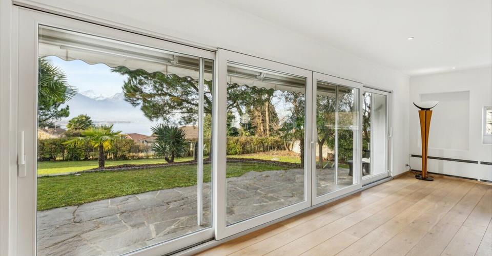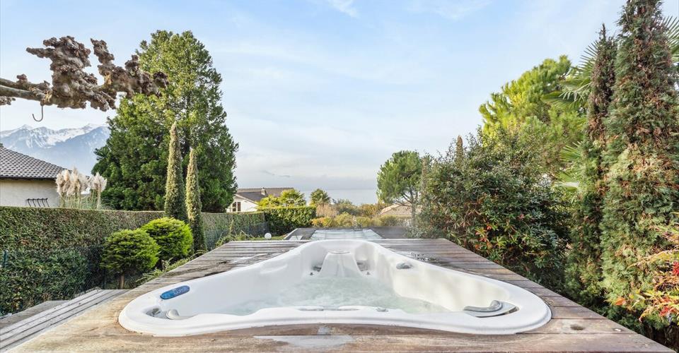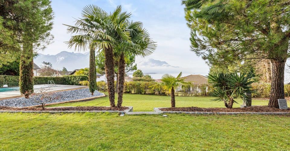 Cette magnifique villa est idéalement située à Villeneuve dans un quartier résidentiel proche des transports et du lac. Implantée sur une parcelle calme et abritée de tout regard, cette villa de la fin des années 60 vient tout juste de subir un profond lifting qui en fait une villa neuve. Entièrement refaite avec des matériaux nobles et totalement dans l’air du temps, la maison diffuse aujourd’hui un agréable parfum méditerranéen où détente et confort se marient parfaitement. – 4 chambres / 1 salle de bain – Piscine extérieur et jacuzzi – Vue lac – Garage et places de parking – Proche des transports – Grande parcelle verdoyante avec palmiers La villa est disponible en résidence principale ou secondaire. Les visites sont possibles 7/7 sur rdv