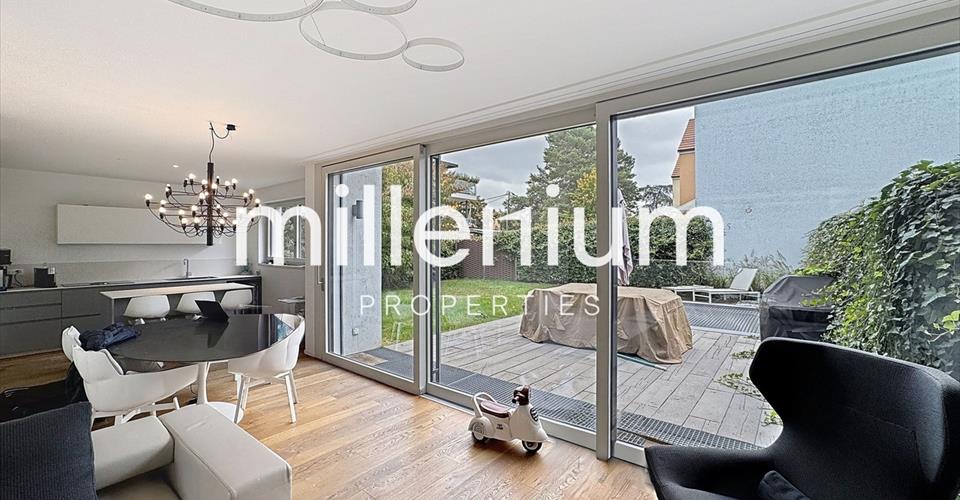 Agence : Millenium Properties Réf : SH/LRE 2267 Située à Chêne-Bourg, cette maison spacieuse offre de beaux volumes intérieurs ainsi qu’un agréable espace extérieur avec piscine. Elle bénéficie d’un emplacement privilégié, proche de toutes les commodités, des transports, des écoles et des commerces. Le bien est composé comme suit : – Une belle pièce de vie composé d’un grand salon et d’une salle à manger – Une cuisine ouverte totalement équipée – Un toilette visiteur. A l’étage : – Deux chambres – Une salle de bain avec toilettes – Une suite parentale avec une salle de douche et toilettes Au sous-sol : – Une grande pièce polyvalente, pouvant faire office de chambre, avec trois grandes fenêtres – Une salle de douche avec toilette – Une buanderie – Une cave À l’extérieur, la maison dispose de deux belles terrasses : l’une, exposée plein sud, s’ouvre sur un agréable espace vert avec une grande piscine, offrant un cadre idéal pour se détendre ; l’autre, côté nord, constitue un espace supplémentaire appréciable. Deux places de parking complètent ce bien. Loyer : CHF 6’200 + Charges individuelles Disponible immédiatement ! Contact : Lilou REY MILLENIUM PROPERTIES Boulevard du théâtre 5, 1204 Genève https://www.milleniumproperties.ch