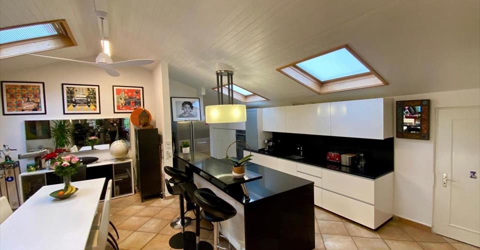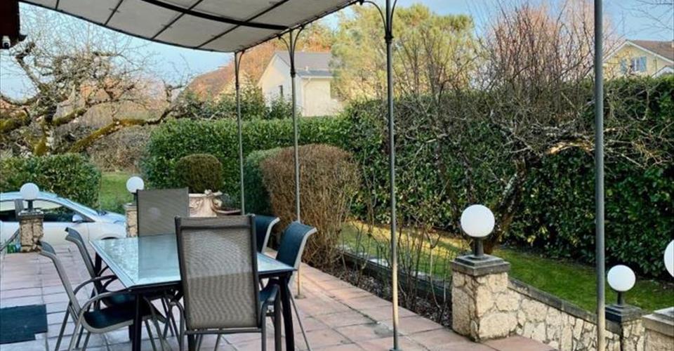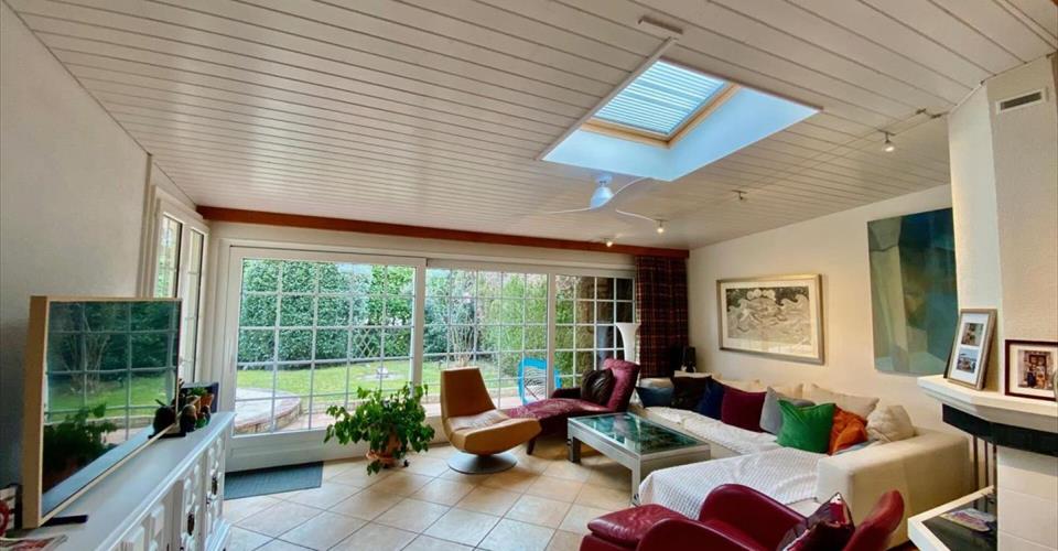 Charmante Villa – Libre de suite Maison lumineuse et spacieuse avec un espace de vie ouvert doté d’une cheminée, donnant sur une grande cuisine moderne et un espace salle à manger. La suite parentale s’ouvre sur un jardin arboré. Une deuxième chambre, une salle de bains et un espace bibliothèque tranquille au rez-de-chaussée. Chauffage au sol dans toute la maison. À l’étage, une mezzanine permet d’aménager une troisième chambre, un bureau ou un espace de création. Jardin privé et clôturé, doté d’un grand patio, d’un barbecue et d’une salle à manger en plein air – idéal pour les soirées d’été en famille ou entre amis. Grand sous-sol avec lave-linge, sèche-linge et penderie supplémentaire. 3 places de parking extérieures derrière un portail automatique. Disponible immédiatement, meublé ou non meublé.
