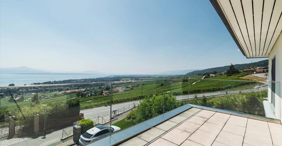 Villa d’exception avec vue sur le lac à louer ? Mont-sur-Rolle CHF 5’950.? + charges CHF 550.? / mois Située sur les hauteurs de Mont-sur-Rolle, cette villa offre un cadre de vie unique avec une vue panoramique sur le lac Léman et les Alpes. D’une conception harmonieuse, la villa dispose de trois chambres spacieuses, dont une suite parentale avec dressing, salle de bains attenante et balcon privatif. Les espaces de vie, baignés de lumière, se composent d’un grand salon ouvert sur une cuisine moderne entièrement équipée, parfaite pour recevoir. Vous trouverez également une toilette visiteurs, une cave et un cellier idéal pour aménager une cave à vin. À l’extérieur, un jardin clos et parfaitement entretenu et un garage double équipé d’une borne de recharge pour voiture électrique complète les prestations. Détails du loyer – Loyer : CHF 5’950.? – Charges : CHF 550.? – Le loyer comprend : logement, jouissance du jardin clôturé, garage double avec borne de recharge – Les charges comprennent : consommation d’eau, chauffage, entretien complet du jardin et arborisation (hors terrasse) – Électricité à la charge du locataire Points forts – Vue lac entièrement dégagée – Quartier résidentiel calme et prisé – Prestations haut de gamme – 2 places de parking intérieures avec borne de recharge Une opportunité rare dans un emplacement d’exception.
