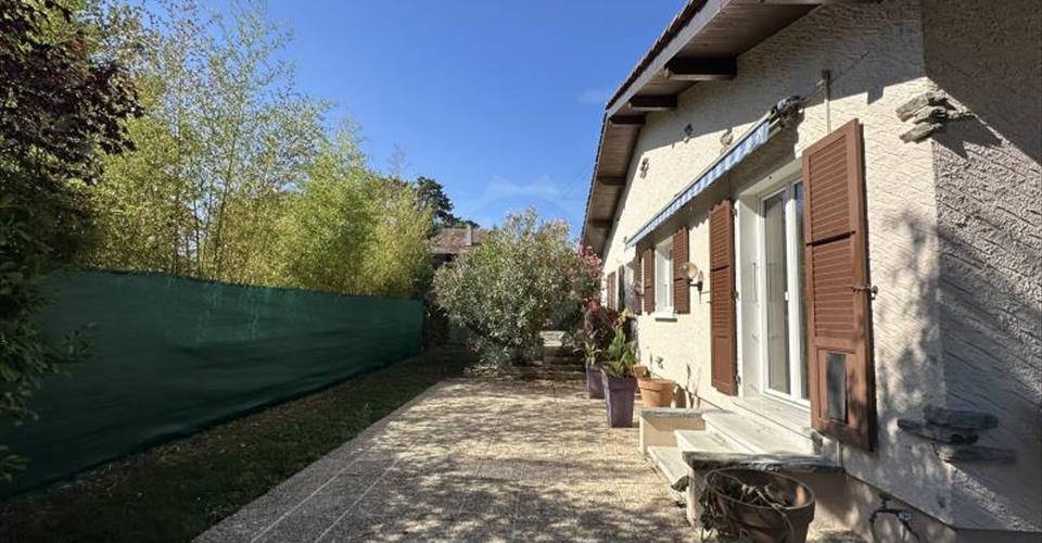 – Disponibilité immediate ou à convenir Située dans une zone résidentielle, calme et verdoyante, charmante villa individuelle de plain-pied de 5 pièces et d’environ 140m2 habitable et 280m2 utiles. Au bénéfice de spacieux espace et d’une belle luminosité, cette villa est disposée comme suit : Au rez-de-chaussée : Hall d’entrée WC visiteurs Cuisine fermée, entièrement agencée et équipée, accès terrasse Spacieux séjour regroupant le salon et la salle à manger, accès terrasse 2 chambres à coucher, dont avec accès direct à la salle d’eau Salle de bains / douche / WC Au sous-sol : WC séparés Buanderie équipée d’une machine à laver et d’un sèche-linge Carnotzet Cave à vin climatisée Cave Local technique (chaudière à gaz) Accès direct au garage pour deux voitures Les extérieurs : Une place de parking extérieure Terrasses Jardin entièrement clôturé LOYER : CHF 4’900.00 CHARGES : INDIVIDUELLES DISPONIBILITE : DE SUITE OU A CONVENIR DUREE DU BAIL : BAIL A TERME FIXE PRENANT FIN à L’OBTENTION DU PERMIS DE CONSTRUIRE (VILLA VOUEE A LA DEMOLITION). Durée minimum garantie, 3 ans.