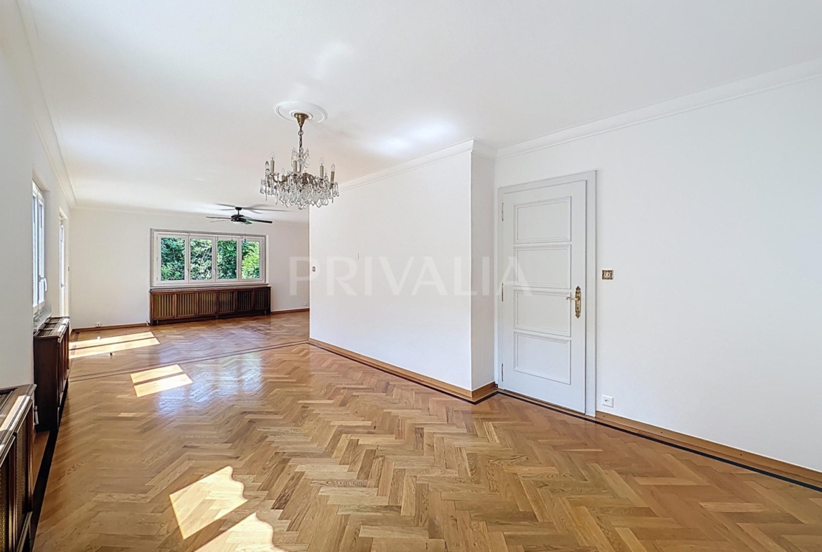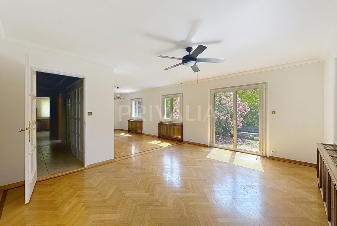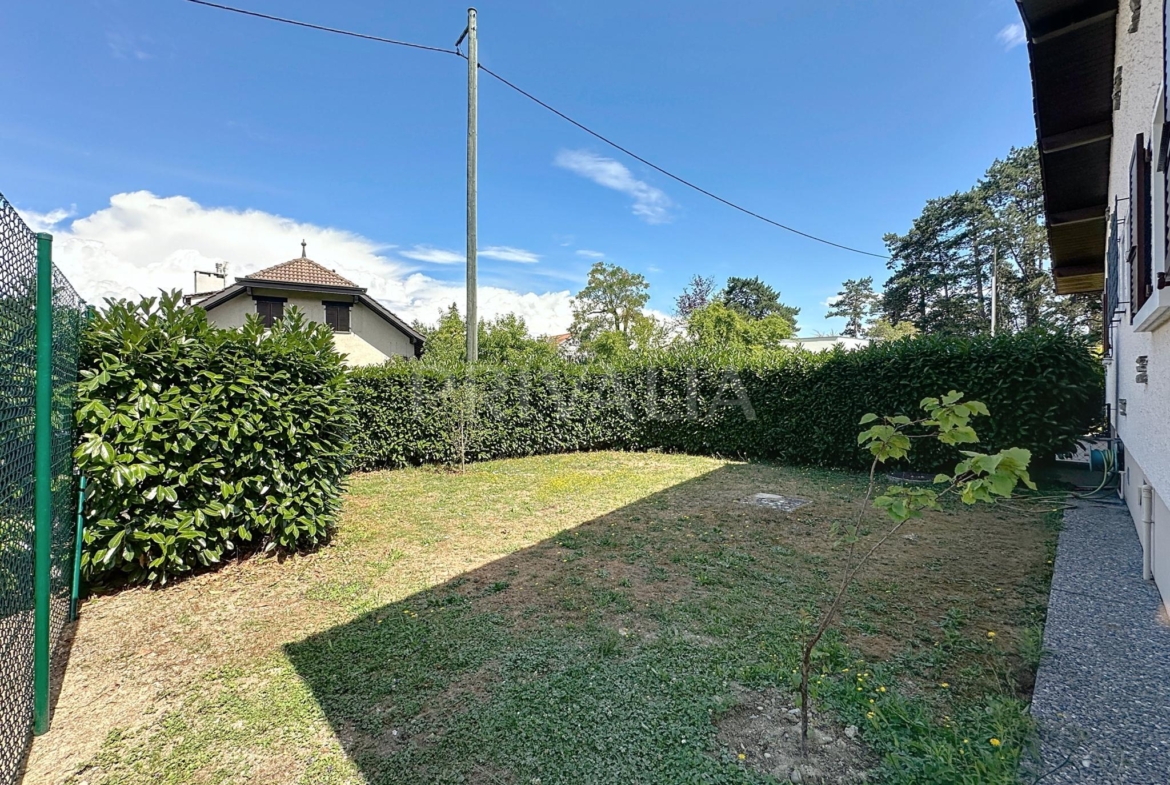 Sur le plateau de Vessy, dans un quartier calme et résidentiel, cette charmante villa individuelle de plain-pied de 5 pièces, dont 2 chambres à coucher, est répartie sur une surface habitable d’environ 140 m2 avec un sous-sol aménagé. Erigée sur une parcelle de 600 m2, elle profite d’un jardin et d’une terrasse d’environ 300 m2.