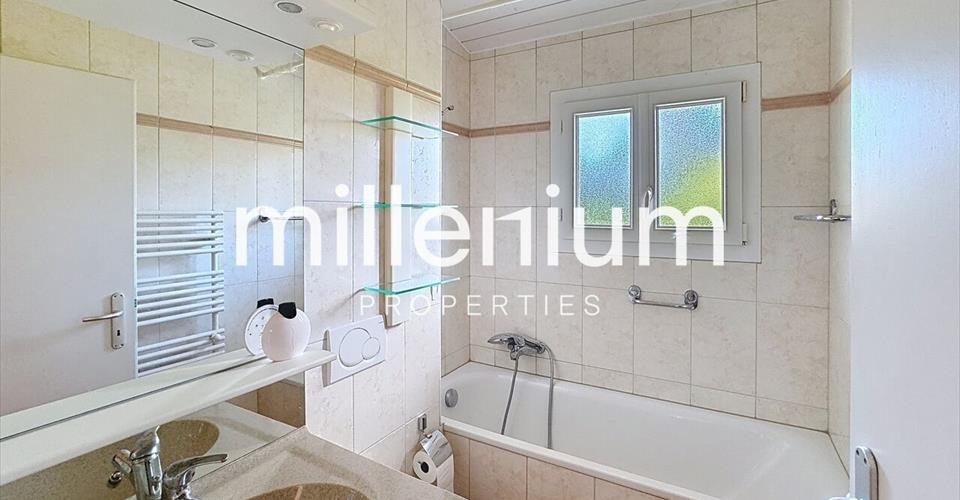 Agence : Millenium Properties Réf : SH/MC 2263 Située dans un quartier résidentiel paisible de Vessy, à seulement quelques minutes de Carouge et du centre-ville de Genève, cette charmante villa offre un cadre de vie agréable, lumineux et pratique pour une famille souhaitant allier confort et proximité des commodités. Points forts Ensoleillement plein sud et belles ouvertures sur l’extérieur, sans vis à vis Environnement calme et verdoyant, à proximité des écoles, CEVA, bus et commerces Sous-sol entièrement aménagé, idéal pour télétravail, salle de jeux ou chambre d’amis Garage fermé + place de parc extérieure Jardin privatif et terrasse avec accès direct depuis le séjour Elle se compose comme suit: Rez-de-chaussée : Hall d’entrée avec rangements Spacieux séjour avec grandes baies vitrées, poêle à bois et accès à la terrasse, au jardin et à la véranda Cuisine entièrement équipée V-Zug, plan de travail et ilot central en pierre naturelle, ouverte sur le séjour Etage : 3 chambres lumineuses avec rangements 1 salle de bains Sous-sol aménagé : Grande pièce polyvalente (salle de jeux, bureau, salle TV, chambre d’appoint) avec rangements 1 salle de bains Buanderie équipée Local technique / cave Annexes 1 garage fermé 1 place extérieure privative 1 abri de jardin Loyer : CHF 4’400.– + charges individuelles Disponible immédiatement ou à convenir. Animaux de compagnie bienvenus sous conditions. Contact : Mathilde CASSARD Millenium Properties SA Boulevard du Théâtre 5, 1204 Genève www.milleniumproperties.ch