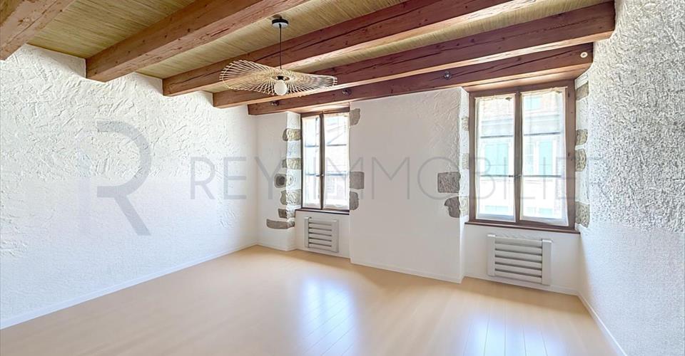Située au coeur du village proche de tous les commerces et commodités, cette maison vaudoise offre une atmosphère authentique par son caractère et son charme déclinés sur ses 240 m2 habitables repartis sur 4 niveaux, aux prestations suivantes : – Belle entrée spacieuse – Cuisine fermée entièrement équipée – Salon/Salle à manger avec cheminée et accès au balcon – Mezzanine spacieuse et lumineuse – 3 Belles chambres – 2 Salle de bains, dont une avec baignoire et douche – 4 Wc visiteurs (un par niveau) – 5 cagibis spacieux pour rangement – Buanderie équipée – Local technique – Combles spacieuses avec un accès aisé. A noter : Possibilité de louer une place de parc ou deux selon. Loyer : 3’150 chf Charges individuelles. Renseignements: Valérie Rey