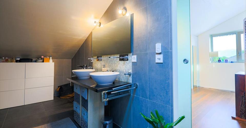 Bourg-en-Lavaux Nichée à la frontière entre les villages d’Aran et de Villette, dans un environnement viticole typique de la région, cette belle maison mitoyenne allie charme, confort et cadre de vie idyllique. Sa situation privilégiée permet de profiter pleinement de la tranquillité des lieux, tout en étant à proximité immédiate des transports publics et des grands axes routiers. Répartie sur trois niveaux, cette propriété offre une surface habitable de 187 m², baignée de lumière grâce à de grandes ouvertures et une orientation optimale. Les espaces de vie sont généreux et bien pensés, créant une atmosphère chaleureuse et accueillante. Le séjour, orienté vers un très joli panorama, s’ouvre sur une grande terrasse ainsi qu’un jardin privatif joliment aménagé. Le rez-de-chaussée inférieur accueille l’entrée principale, une buanderie ainsi qu’un espace polyvalent pouvant faire office de salle de jeux, de fitness ou de rangement supplémentaire. Le rez-de-chaussée supérieur accueille deux chambres, une salle de bains avec baignoire, une cuisine moderne entièrement équipée, un vaste séjour/salle à manger convivial ainsi qu’un WC visiteurs. Au premier étage se trouve une spacieuse chambre parentale en suite, avec dressing et salle de douche attenante, ainsi qu’un espace bureau. Cette maison représente une opportunité idéale pour une famille souhaitant s’installer dans un environnement serein, avec une vue dégagée sur le lac et les Alpes. Deux places de stationnement couvertes ainsi qu’un spacieux local extérieur privatif viennent compléter ce bien.