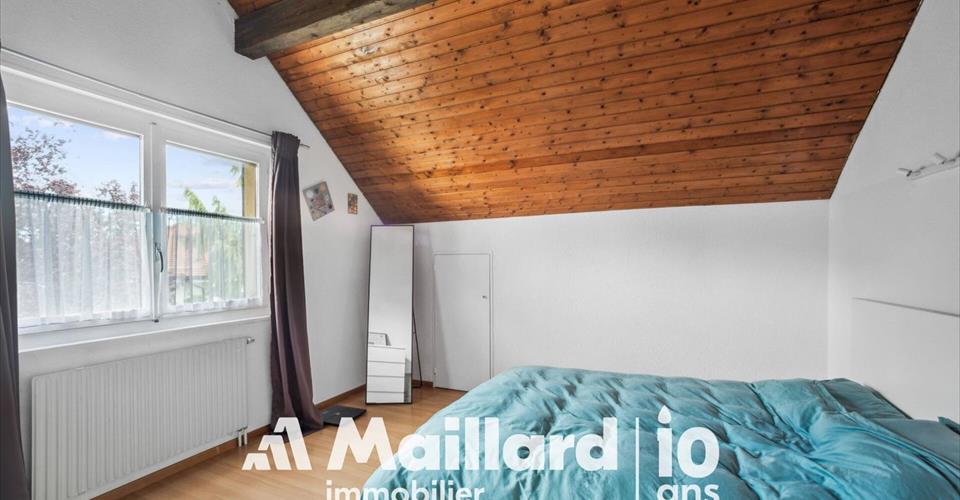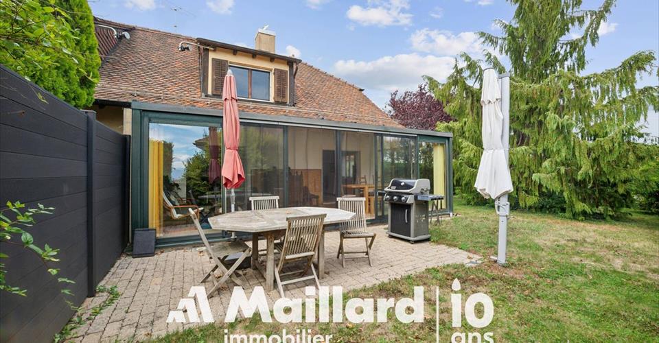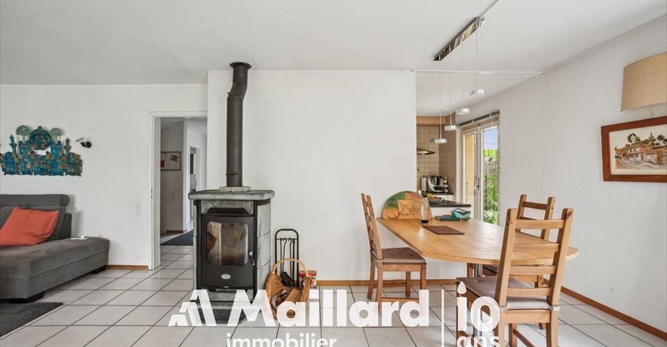 À découvrir chez MAILLARD IMMOBILIER Bassins – Villa mitoyenne familiale avec jardin Nichée dans un quartier calme et verdoyant, cette jolie villa mitoyenne d’env. 180 m² utiles séduit par sa luminosité, son confort et ses espaces pensés pour la vie de famille. Séjour chaleureux avec poêle & véranda de 26 m² ouvrant sur le jardin 3 chambres confortables & 2 salles de bains Parcelle arborée de 778 m² avec terrasse intime Sous-sol avec rangements & buanderie Garage box & place de parc extérieure Un bien rare alliant tranquillité, praticité et charme, idéal pour une famille ! Contactez-nous dès maintenant pour plus d’informations et organiser une visite. Christopher Aubert Un cadre de vie recherché à Bassins Idéalement située dans un environnement calme et sans nuisance, la villa bénéficie d’un accès facile aux commodités locales et reste proche de Nyon, Genève et Lausanne grâce aux axes autoroutiers et transports publics. Bassins offre un cadre de vie privilégié, entre nature, tranquillité et proximité urbaine.