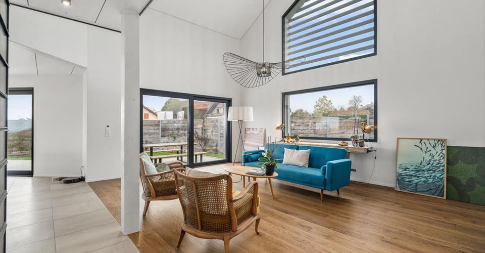 Venez découvrir cette superbe maison neuve responsable de l’environnement et dans un concept “énergie zéro”. Caractéristiques principales : Surface généreuse : Cette maison propose un gros volume autant habitable qu’utile, idéale pour les familles ou pour ceux qui recherchent de l’espace. Design moderne et lumineux : Conception local avec une architecture contemporaine, des finitions de qualité et des matériaux haut de gamme. Les grandes baies vitrées offrent une luminosité optimale tout au long de la journée. Espaces extérieurs : Profitez d’un agréable jardin, d’une terrasse aménagée et deux beaux balcons avec des installations permettant d’avoir une certaine intimité. Emplacement privilégié : Bassins est un village authentique et paisible offrant une qualité de vie remarquable, avec un accès rapide aux écoles, commerces et aux axes autoroutiers pour rejoindre les grande villes environnantes. L’accès à la maison est très confortable. Voici sa disposition : Au sous-sol, une buanderie, une cave, un local technique, un atelier, un garage double et une grande pièce (salle de jeux, home cinéma, etc) On retrouve au rez-de-chaussée, une cuisine ouverte sur un grand espace de vie avec terrasse et jardin, 2 chambres, une salle d’eau et un wc visiteurs Enfin, le 1er étage dispose d’une spacieuse mezzanine, une chambre, une suite parentale avec dressing et une salle d’eau avec wc 2 places de stationnement extérieur