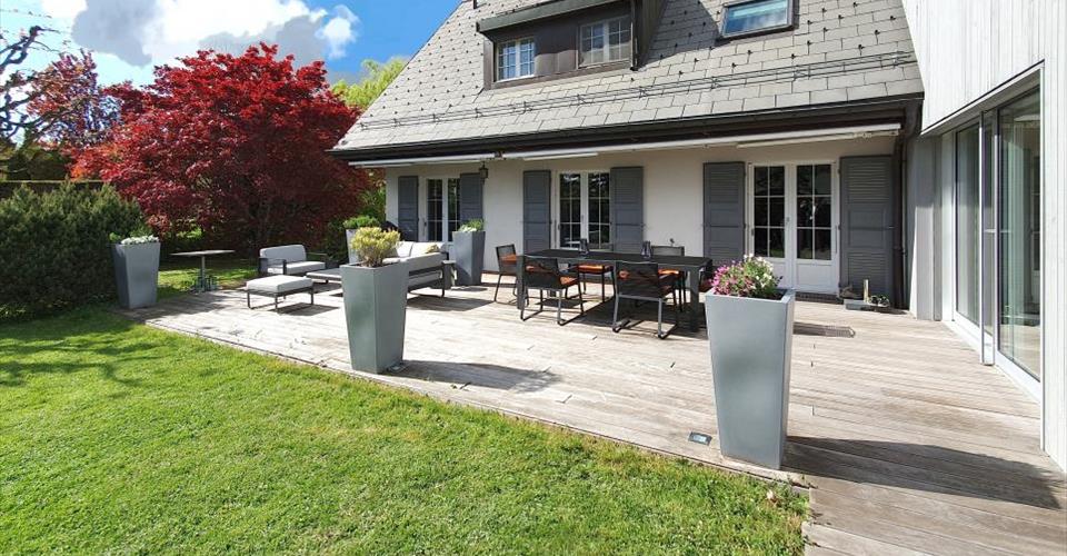 Située dans un quartier résidentiel calme de Belmont-sur-Lausanne, cette villa bénéficie d’une localisation idéale, entre campagne et proximité du centre de Lausanne, avec un accès rapide aux autoroutes. Initialement construite en 1972, elle a été entièrement rénovée et agrandie en 2012, avec des travaux complémentaires en 2024. Les futurs propriétaires n’auront aucun travaux à prévoir, à part d’éventuelles personnalisations. L’intérieur de cette villa se distingue par ses espaces lumineux et fonctionnels, conçus avec soin pour un confort optimal. Le rez-de-chaussée s’ouvre sur un salon accueillant agrémenté d’un coin cheminée, un espace bibliothèque chaleureux et une cuisine moderne, parfaitement équipée, qui invite à la convivialité. À l’étage, nous découvrons des chambres spacieuses, idéales pour une famille, dont une suite parentale située dans l’extension récente, offrant un cadre intime et confortable. Le sous-sol complète l’ensemble avec une grande pièce polyvalente, idéale pour un bureau, une salle de jeux ou un espace détente, ainsi que des caves et des locaux techniques pratiques. À l’extérieur, un jardin plat, une terrasse en bois, un jacuzzi et un garage pour deux voitures complètent la propriété. La construction d’une piscine est possible, sous réserve d’autorisation. Cette villa combine espaces généreux, finitions de qualité et une proximité idéale avec les commodités, écoles, commerces et transports. Le taxi-bus, sur appel (arrêt à proximité immédiate de la maison), dessert Pully Val+Vert, la gare CFF de Pully-Sud, le centre de Pully etc. L’accès à l’autoroute A9 est à environ 4 minutes, Lausanne-Chailly se trouve à 10 minutes en voiture ou en bus, et le centre de Pully avec ses commerces est accessible en 10 minutes également. L’École Hôtelière de Lausanne (EHL) est située à environ 8 minutes en voiture, tandis que le CHUV est à 10-12 minutes en voiture. Disponible dès début juillet 2025 ou à convenir. C’est avec grand plaisir que nous vous recevons sur rendez-vous pour vous présenter cette magnifique villa ! Dossier, informations et visite sur demande en nous envoyant vos coordonnées complètes par e-mail ou via le formulaire de contact. Laurent Pannatier PROXIMMO Agence Immobilière Sàrl Place Bel-Air 1 CH – 1003 Lausanne www.proximmo.ch ——– Toutes nos offres et promotions sont visibles ici : https://www.proximmo.ch/acheter/ ——– Vous envisagez de mettre en vente votre bien immobilier ? Contactez-nous sans engagement pour une estimation gratuite de votre objet. www.proximmo.ch