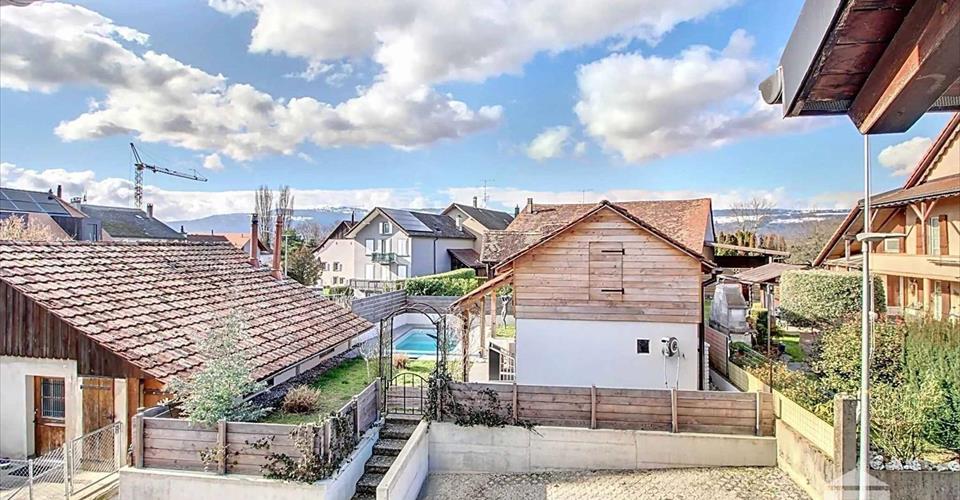 Au cœur du village de Belmont-sur-Yverdon, cette maison de village allie le charme de l’ancien à une rénovation soignée, offrant un cadre de vie à la fois chaleureux, fonctionnel et propice à la vie de famille. Traversante, elle bénéficie d’une belle luminosité et d’une circulation fluide. Déployée sur trois niveaux, elle propose une cuisine équipée avec coin repas, un séjour lumineux agrémenté d’un poêle à bois, ainsi que trois spacieuses chambres à l’étage, dont une suite parentale avec salle de douche privative. Le dernier niveau abrite un espace aménagé en mini-studio, idéal pour un adolescent, un bureau ou des invités, complété par une buanderie et un espace de rangement. À l’extérieur, un magnifique pool house de 28 m² complète un jardin entièrement clôturé, une piscine moderne chauffée par pompe à chaleur, ainsi qu’une cuisine d’été parfaitement intégrée, un cadre idéal pour les moments de partage et de détente en famille. Deux places de parking extérieures viennent compléter cette offre. Située dans un environnement calme et agréable, cette maison séduira les amateurs de biens au charme singulier, à la recherche d’un cadre de vie paisible à proximité immédiate d’Yverdon-les-Bains et de ses commodités. A compter du 1er juillet prochain, retrouvez toutes nos annonces exclusivement sur IMMOBILIER.CH, le portail des professionnels romands de l’immobilier