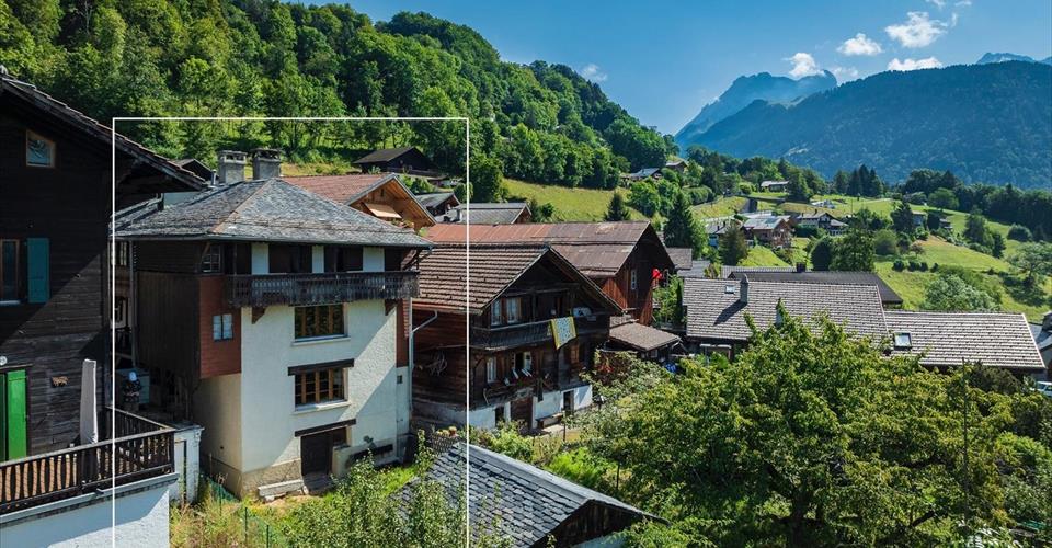Les Posses-sur-Bex (VD) Maison individuelle au coeur du village sur une parcelle de 460 m2. Vue superbe et imprenable sur les sommets environnants et la plaine du Rhône en contre-bas. Construite dans les années 1900 elle dispose d’une surface utile d’environ 240 m2 sur 3 niveaux. Orientée plein Sud, elle se compose de 2 appartements indépendants. Au rez-de-chaussée et 1er étage : Appartement duplex de 3.5 pièces avec cuisine indépendante (cuisinière électrique, lavabo-évier), cellier, séjour (grande fenêtre avec vitrage double et store électrique, poêle à bois) avec l’escalier d’accès pour le niveau supérieur. Local technique (accès eau, chauffe-eau électrique, buanderie) et WC indépendant. A l’étage : hall d’entrée, une généreuse chambre avec poêle pierre-ollaire, une chambre avec poêle à bois. Au centre, une salle de bains avec lavabo et un WC indépendant. 2ème étage : Appartement de 3.5 pièces : 2 chambres (en enfilade), cuisine habitable (non aménagée), salle de douche-lavabo et WC indépendant, généreux séjour avec poêle pierre-ollaire. Les pièces sont reliées par une coursive fermée. Un balcon Sud complète ce niveau. Galetas sous toiture accessible via une trappe située dans la cuisine. Cave indépendante au rez-inférieur. Sur le devant un espace jardin avec divers arbres fruitiers ainsi qu’une annexe (bûcher en pierres) complètent l’ensemble. La construction est saine avec un ensemble dans “son jus”. Un budget devrait être prévu pour la rénovation de la toiture et le remplacement des fenêtres simples vitrages. Des travaux intérieurs seraient également à envisager en particulier dans les cuisines et salles d’eau. Néanmoins libre à chacun de donner à son projet d’habitation le confort qu’il souhaite. Cette maison s’adresse principalement à des personnes à la recherche d’une habitation à rénover/transformer, dans un cadre montagnard authentique, proche de la nature. Très belles boiseries intérieures. Vente en résidence secondaire autorisée. Les Posses-sur-Bex est un hameau montagnard plein de charme à environ 10 min à environ 5 min. en voiture en contre-bas de la station touristique de Gryon/Barboleuse et du domaine skiable de Villars-Les Diablerets-Gryon (Magic Pass). Il est relié par le train à crémaillères Bex-Villars-Bretaye (gare à 5 min. à pied). Accès autoroutiers à 15 minutes en voiture (Bex). Dossier complet sur demande et visite sur rendez-vous. P.S. Nos photos ne sont pas retravaillées par l’IA et correspondent à la réalité des lieux.