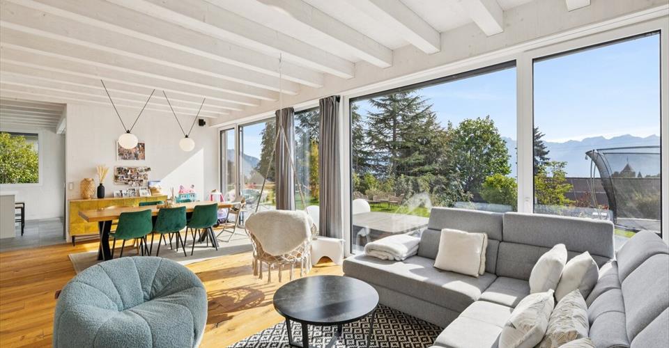 Découvrez cette magnifique villa individuelle située dans un quartier paisible de Blonay-St-Légier. Avec ses 5 chambres spacieuses, cette propriété est idéale pour une famille en quête de confort et de tranquillité. Vous apprécierez les 2 salles de bains modernes, les 2 dressings pratiques et la buanderie fonctionnelle qui facilitent votre quotidien. Terrain plat, entretenu par un tondeur robot Jacuzzi extérieur 3 places de parc et couvert à voiture pompe à chaleur et panneaux solaires