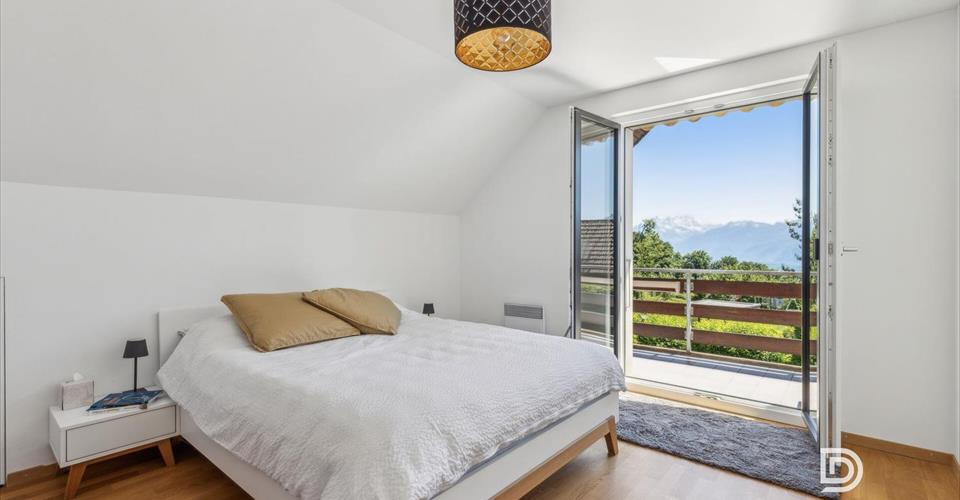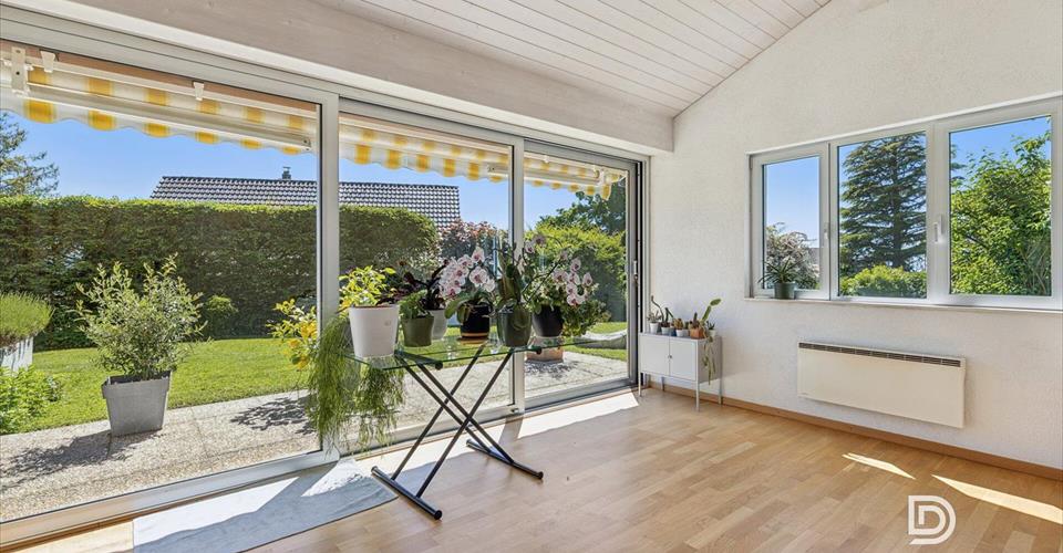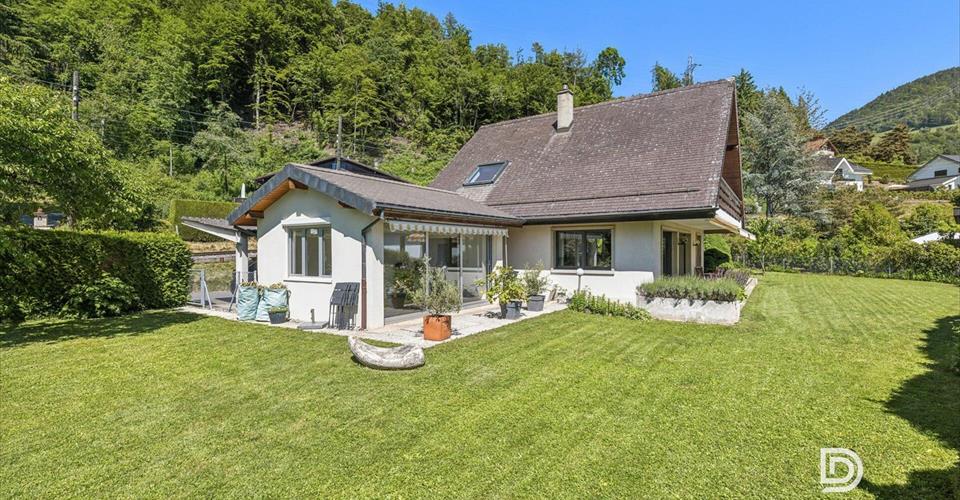 DOSSIER COMPLET SUR DEMANDE Infos en bref: 6,5 pièces: 3 chambres, 2 salles de bain Surfaces: habitable 130 m², utile : 195 m², parcelle 1001 m², Orientation: Sud Places de parc: 4 sous couvert À 5 minutes à pied du centre de Blonay ———————————————- Charmante villa individuelle avec vue, jardin et rénovation récente à Blonay Idéalement située dans un quartier résidentiel très calme de Blonay, cette villa individuelle rénovée avec soin en 2023 constitue un lieu de vie idéal pour une famille à la recherche d’espace, de confort et de verdure. Édifiée en 1974 sur une belle parcelle plate de 1’001 m², elle bénéficie aujourd’hui d’une mise à jour complète alliant matériaux de qualité, efficacité énergétique et charme intemporel. Vous apprécierez particulièrement : Son aspect “clés en main”. Sa grande pièce de vie ouverte sur l’éxterieur. Sa belle luminosité grâce à son orientation au Sud. Ses vastes espaces utiles. Son vaste jardin plat et facile à entretenir. Sa belle vue sur le lac et les montagnes Son efficacité énergétique et ses faibles charges La proximité du village à 5 minutes à pied. Son environnement au calme.