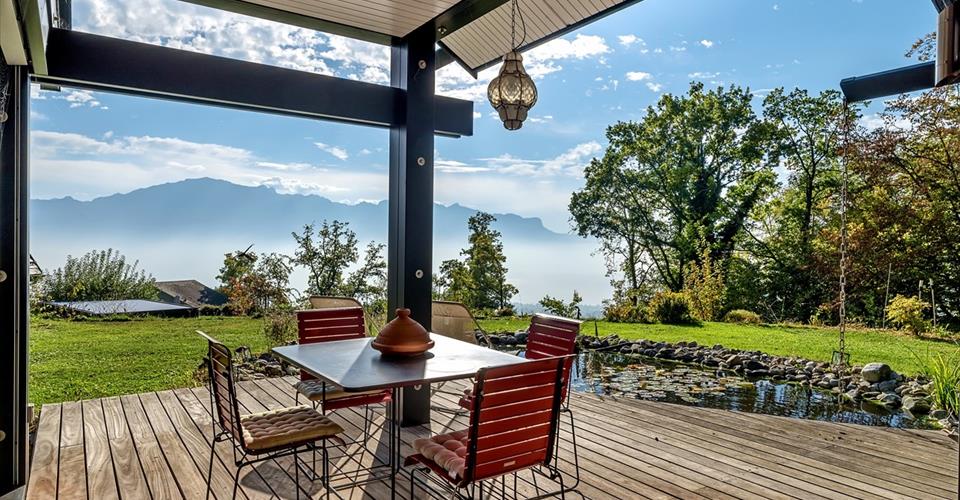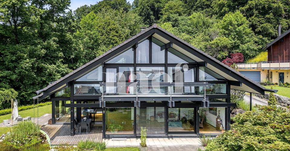 Sise au coeur d’un environnement calme et résidentiel, cette magnifique villa individuelle contemporaine de type “Huf Haus”, au charme atypique, saura en séduire plus d’un. Elle se trouve sur les hauteurs de la commune de Blonay et bénéficie ainsi d’une splendide vue panoramique sur le lac Léman et les Alpes. Il est important de noter qu’aucune nuisance sonore ne perturbe la quiétude de ce lieu d’exception. Ce bien dispose de beaux espaces extérieurs, comprenant notamment plusieurs terrasses, divers coins de jardin, une petite forêt et une mare à poissons (carpes) avec un accès direct au jardin, ainsi qu’un balcon occupant toute la façade avant de la propriété. Les maisons de type “Huf Haus”, de conception allemande, offrent de grands volumes, une lumière fabuleuse et une qualité de construction supérieure. Actuellement composée de 4 chambres à coucher, cette maison pourrait facilement en accueillir une cinquième, grâce à un aménagement simple à mettre en place. À proximité immédiate de Vevey et des axes autoroutiers, le village de Blonay offre toutes les commodités nécessaires à ses habitants. Les différents commerces, transports publics et écoles publiques se trouvent à quelques minutes de la maison. Un arrêt du train reliant Les Pléiades à Blonay, St-Légier et Vevey se situe à 3 minutes à pied de la propriété, accessible par un itinéraire sécurisé. Toutes les écoles et cliniques de renommée internationale se trouvent également à proximité de cette charmante commune.