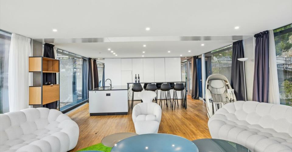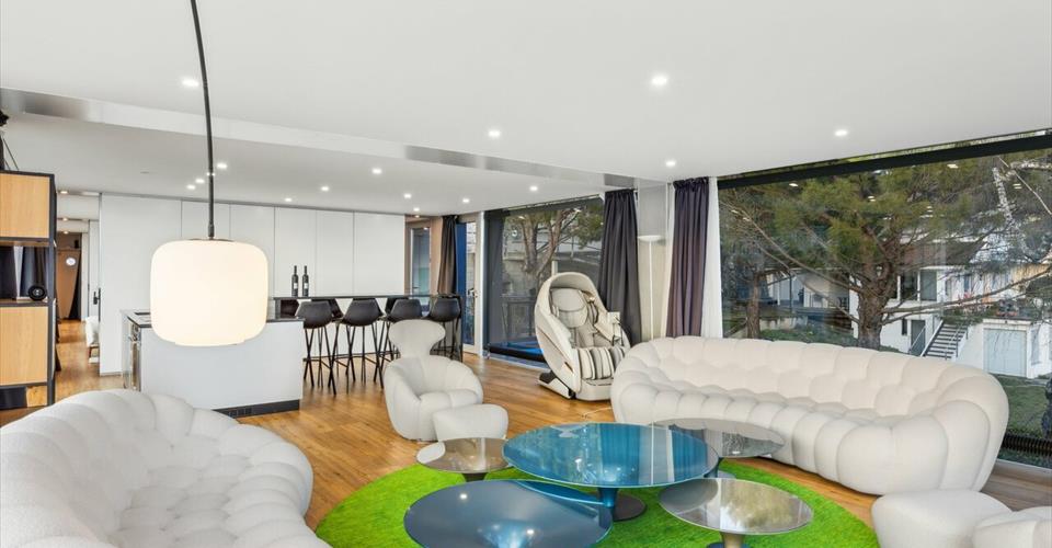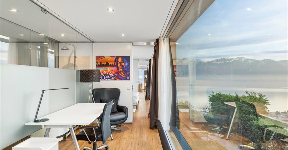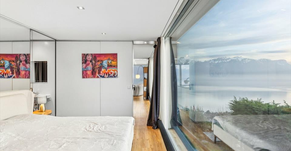 OBJET EXCEPTIONNEL Nichée sur les hauteurs du lac Léman, la Villa Chardonne incarne l’élégance contemporaine et l’harmonie avec la nature environnante. Comme pour des ouvrages prestigieux…le rêve… par le bureau d’architecture suisse Made In, cette résidence se distingue par son design épuré et sa conception audacieuse. La villa repose sur une structure mêlant verre et acier, offrant une impression de légèreté et de transparence. Les lignes minimalistes du bâtiment s’intègrent parfaitement au paysage, créant un dialogue subtil entre l’architecture et la nature environnante. Les immenses baies vitrées permettent une immersion totale dans le décor exceptionnel, offrant des vues panoramiques 360° à couper le souffle sur le lac Léman et les sommets alpins. À l’intérieur, les espaces sont ouverts et baignés de lumière naturelle, renforçant la sensation de fluidité entre l’intérieur et l’extérieur. Les matériaux nobles et les finitions haut de gamme confèrent à l’ensemble une atmosphère à la fois chaleureuse et sophistiquée. En outre, la parcelle offre le privilège d’accueillir des vignes, permettant de produire chaque année quelques bouteilles par un vigneron du coin, ajoutant ainsi une touche d’authenticité et de tradition à cet écrin d’exception. Véritable chef-d’œuvre d’architecture contemporaine, la Villa Chardonne séduit par son élégance intemporelle et son intégration parfaite dans son environnement exceptionnel.