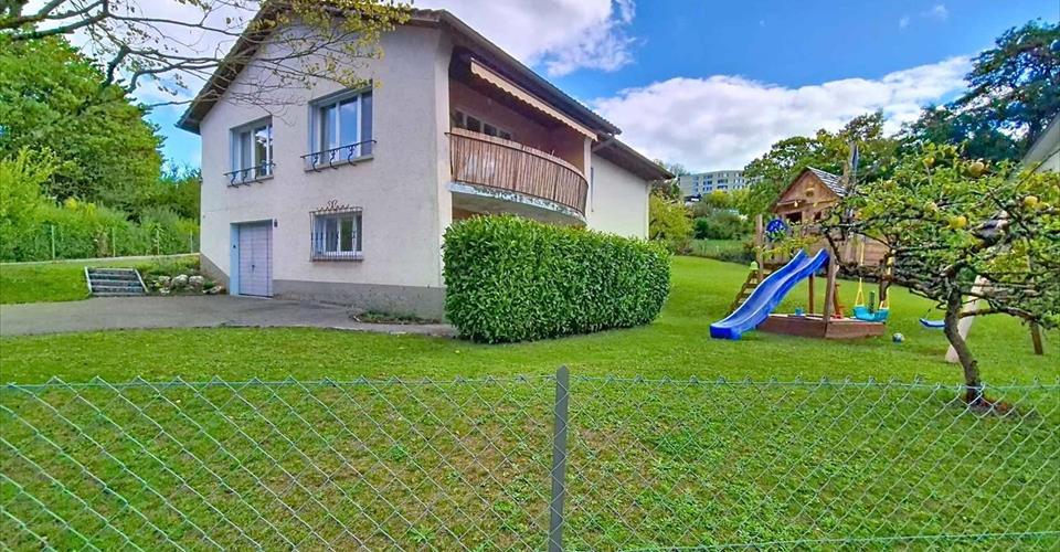 Idéalement située dans un quartier résidentiel paisible d’Yverdon-les-Bains, cette propriété séduit par son cadre verdoyant et sa proximité immédiate avec les écoles, les commerces et les infrastructures de la ville. Elle offre à la fois intimité, confort et un fort potentiel de valorisation, le tout à quelques minutes seulement du centre et des grands axes de communication. Édifiée sur une généreuse parcelle de 1’167 m², la villa développe environ 142 m² habitables répartis sur trois niveaux. Le rez-de-chaussée accueille un hall d’entrée ainsi qu’une suite parentale avec salle de douche privative. L’étage principal propose une cuisine ouverte sur un vaste séjour prolongé par deux balcons baignés de lumière, trois chambres, une salle de bains et un WC. Le rez inférieur complète l’ensemble avec une buanderie, un garage, un local technique et une cave alimentée par une source naturelle d’eau, collectée dans des cuves installées dans le jardin, un atout rare qui confère à la maison un caractère unique. Cet étage offre également la possibilité d’aménager un studio indépendant avec cuisine et salle de douche, idéal pour accueillir des invités, exercer une activité professionnelle ou créer un revenu locatif. Soigneusement entretenue et partiellement rénovée entre 2020 et 2024, la propriété bénéficie déjà de belles améliorations tout en laissant la liberté de l’adapter pleinement aux goûts et aux besoins de ses futurs propriétaires. Ce bien représente une opportunité rare sur le marché yverdonnois. Cet objet vous intéresse ? Contactez-nous dès aujourd’hui pour organiser une visite.