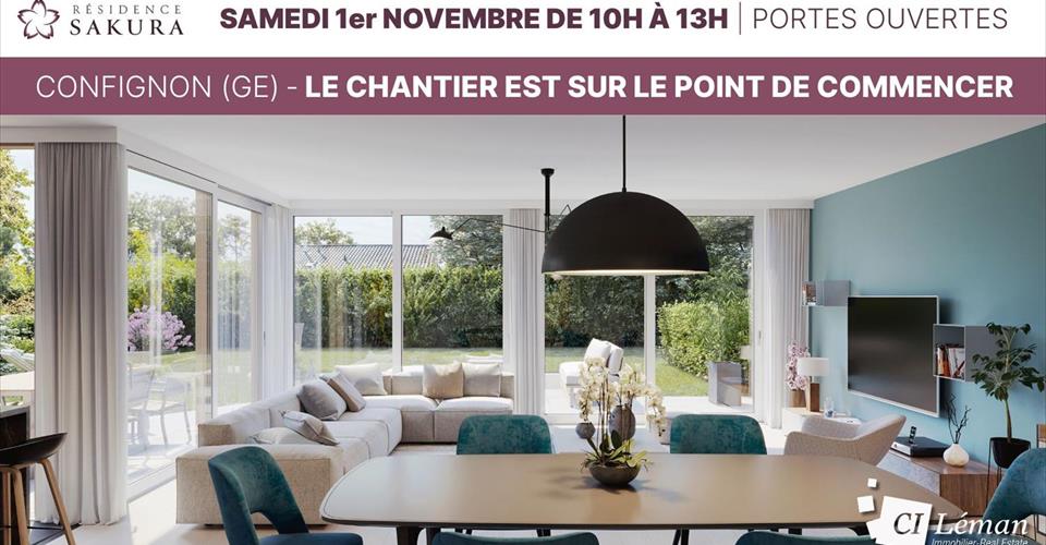 Nous avons le plaisir de vous inviter à découvrir la Résidence Sakura, un projet d’exception situé à Confignon, qui allie confort, modernité et performances énergétiques de pointe. 6 villas jumelées haut de gamme : Normes Très Haute Performance Énergétique (THPE) Des espaces lumineux, une triple exposition et des jardins paysagers Exonération de l’impôt immobilier complémentaire pendant 20 ans *** Démarrage du chantier imminent *** Ne manquez pas de vous inscrire pour notre événement Portes Ouvertes ! Un simple mail confirmant votre présence suffit ! Route du Grand-Lancy 197, 1232 Confignon Samedi 1er Novembre De 10h à 13h Ce sera l’occasion idéale de voir la parcelle, d’échanger avec notre équipe et d’en apprendre davantage sur ces villas pensées pour un cadre de vie privilégié. Découvrez plus de détails sur le projet ici : www.residencesakura.ch Nous nous réjouissons de vous accueillir et de vous accompagner dans la réalisation de votre projet immobilier. Pour toute question ou prise de rendez-vous : | À très bientôt !
